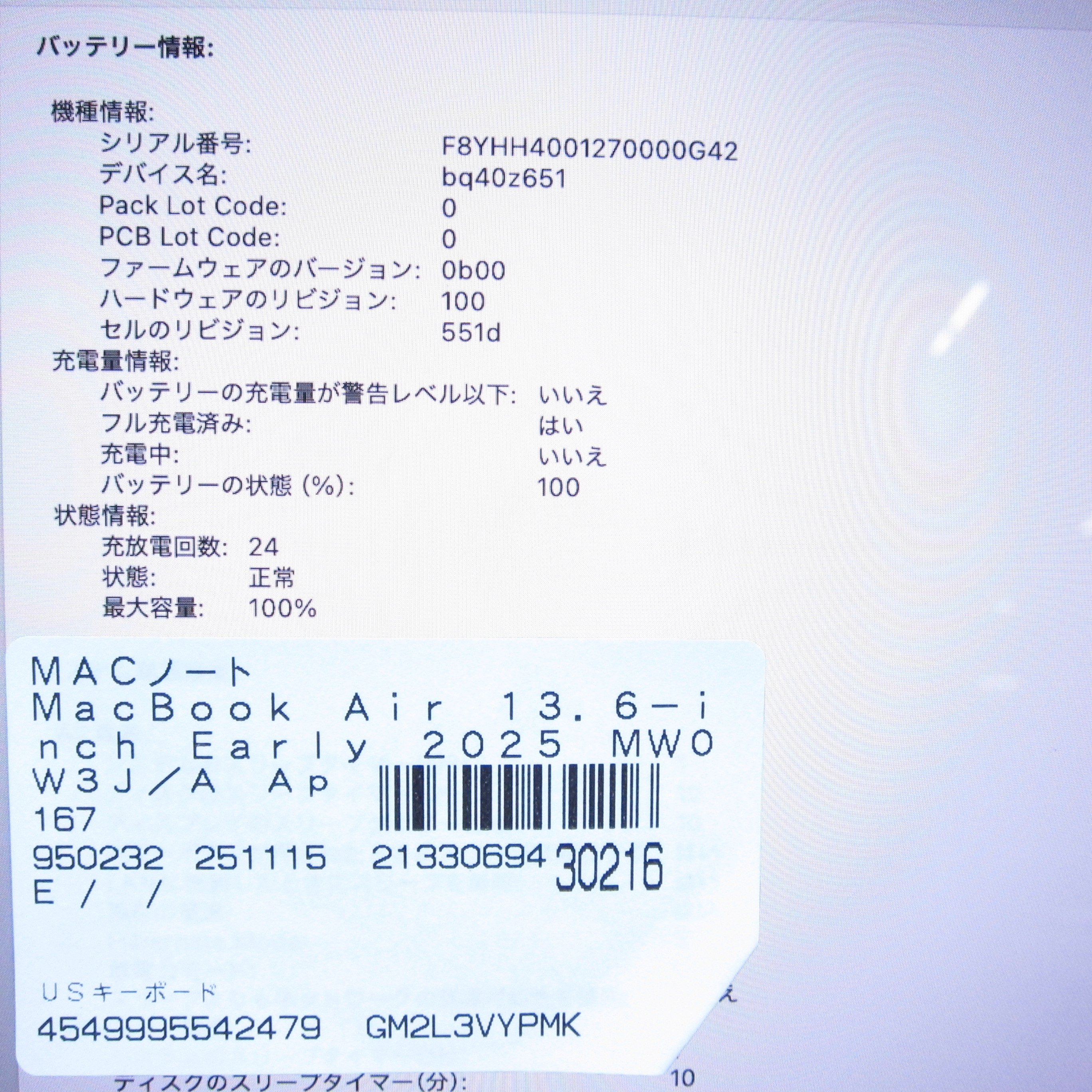 〔中古品〕 MacBook Air 13.6-inch Early-2025 MW0W3J/A Apple M4 10コアCPU_8コアGPU 16GB SSD256GB シルバー 〔15.7 Sequoia〕 [グラフィック:オンボード/USキーボード]