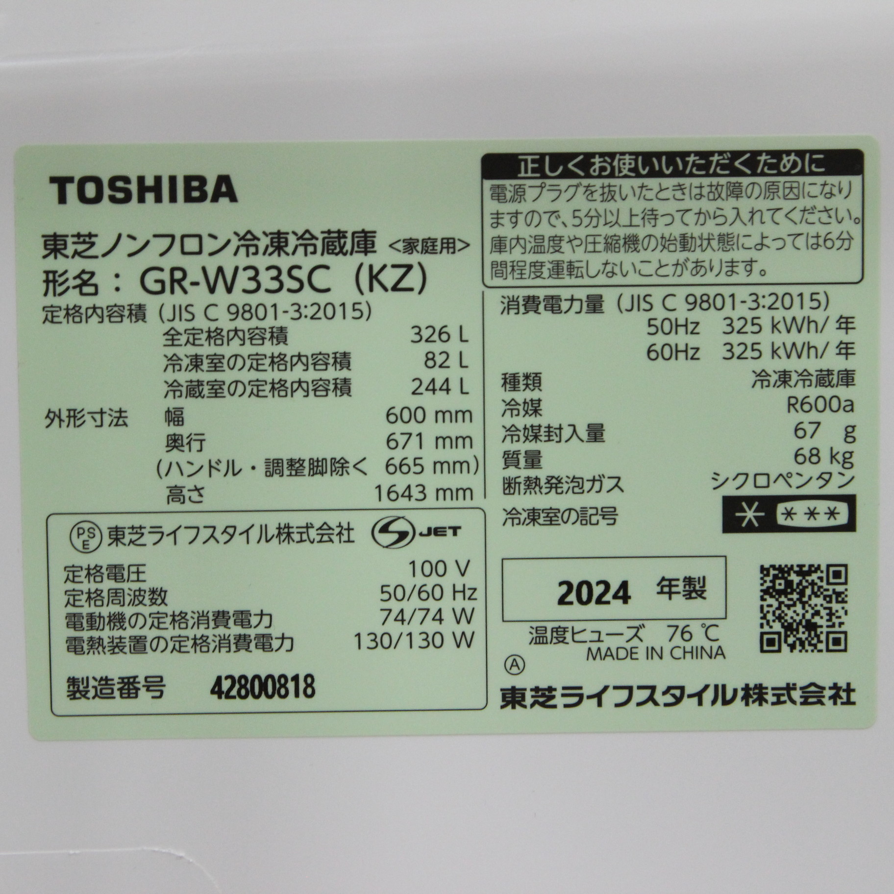 〔展示品〕 冷蔵庫 VEGETA(ベジータ)SCシリーズ マットチャコール GR-W33SC-KZ [幅60cm /326L /3ドア /右開きタイプ /2024年]