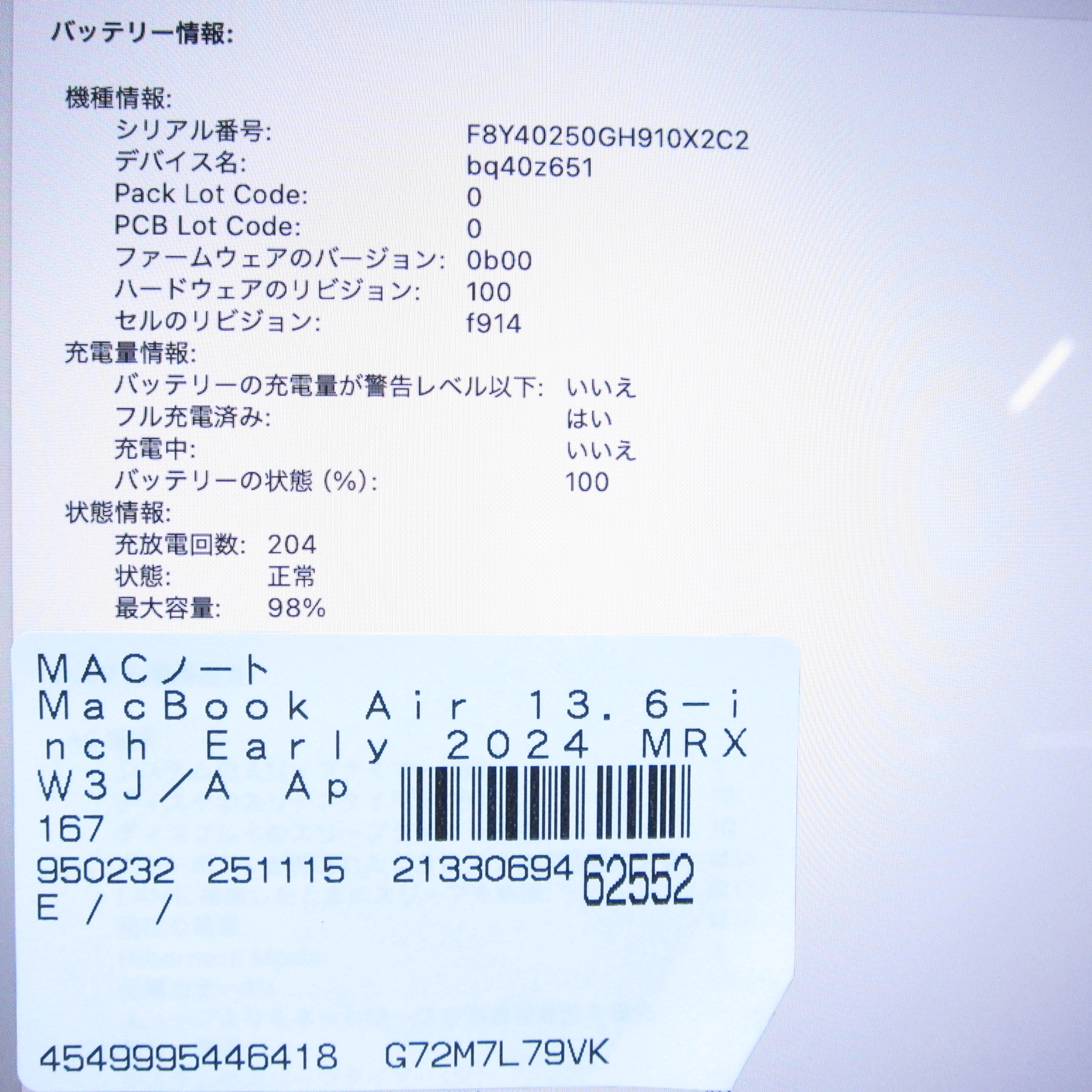 中古商品ランクについて 付属品・商品状態について 〔付属品〕ACアダプター(本体用)、USB-C - MagSafe 3ケーブル、外箱