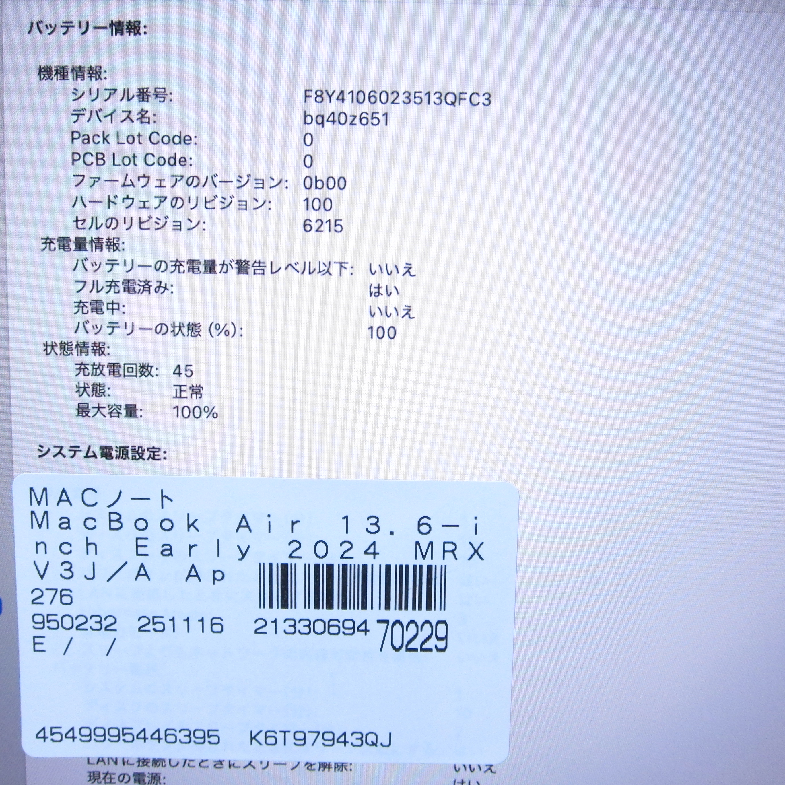 〔中古品〕 MacBook Air 13.6-inch Early-2024 MRXV3J/A Apple M3 8コアCPU_8コアGPU 8GB SSD256GB ミッドナイト 〔15.3 Sequoia〕 [グラフィック:オンボード/JISキーボード]