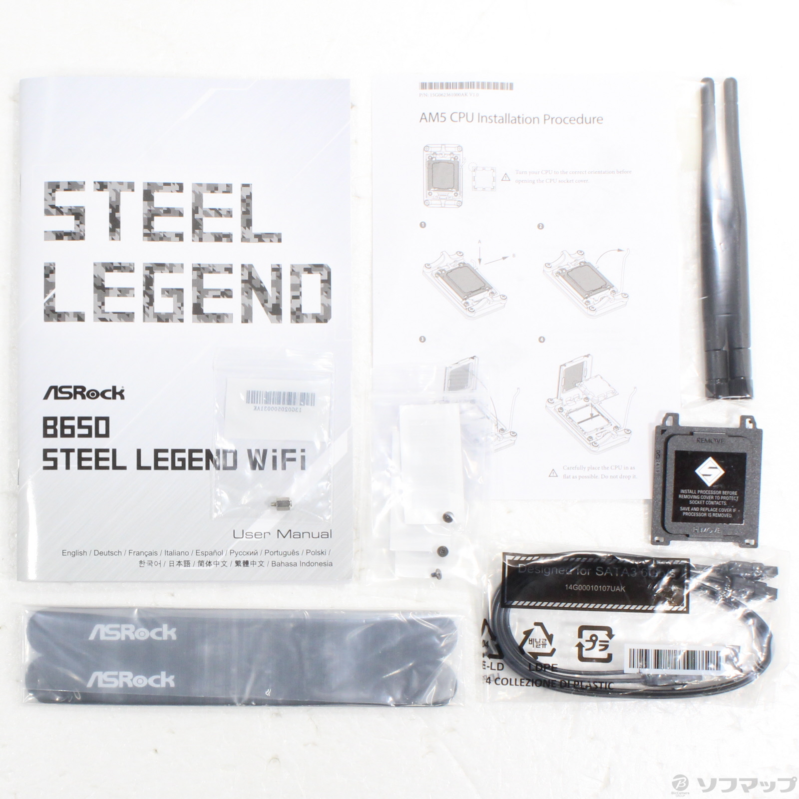 中古商品ランクについて 付属品・商品状態について 〔付属品〕ユーザーマニュアル、Wi-Fiアンテナ×2、CPUソケットカバー、M.2ソケット用ネジ×3、M.2ソケット用スタンドオフ、SATAケーブル×2