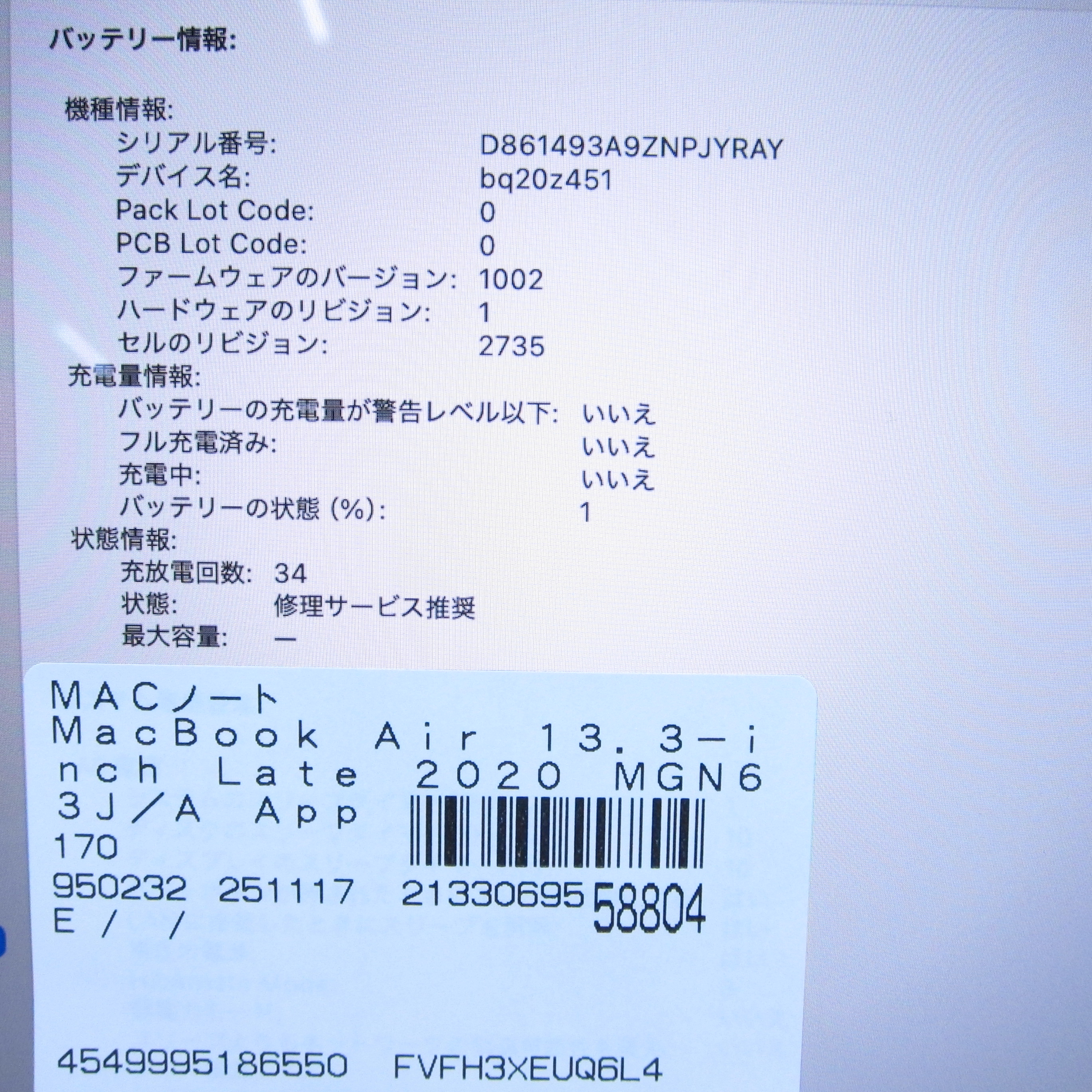 〔中古品(難あり)〕 MacBook Air 13.3-inch Late-2020 MGN63J/A Apple M1 8コアCPU_7コアGPU 8GB SSD256GB スペースグレイ 〔15.3 Sequoia〕 [グラフィック:オンボード/JISキーボード]