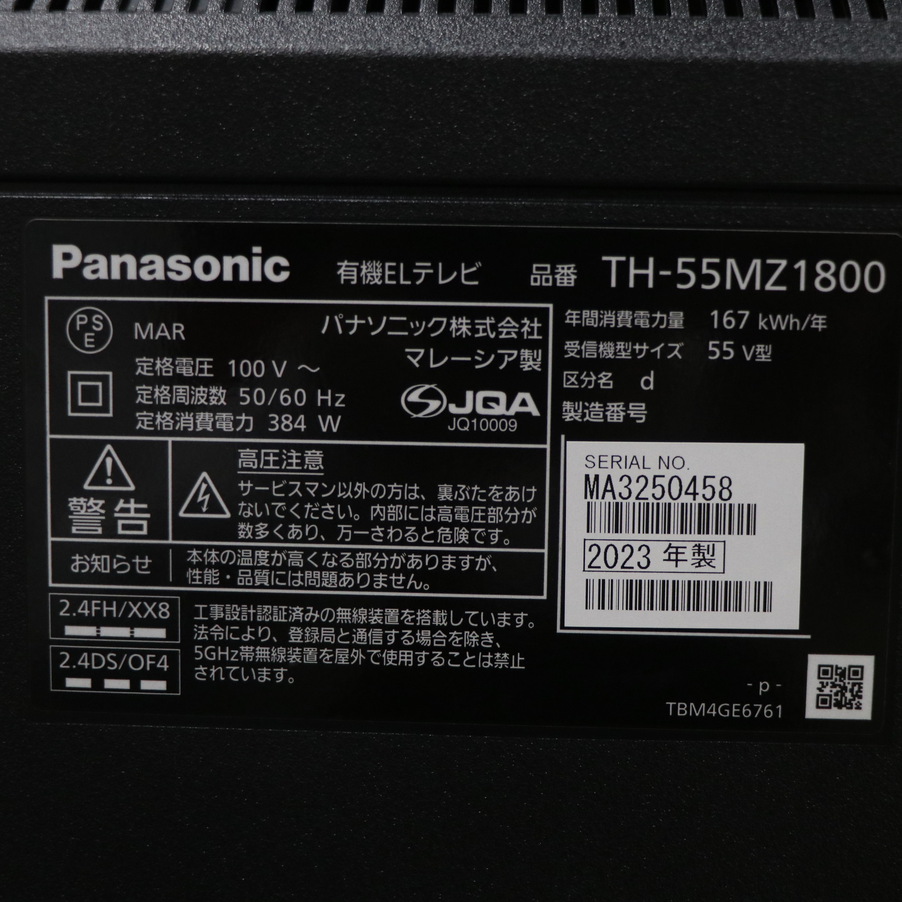 〔展示品〕 有機ELテレビ VIERA(ビエラ) TH-55MZ1800J [55V型 /Bluetooth対応 /4K対応 /BS・CS 4Kチューナー内蔵 /YouTube対応]