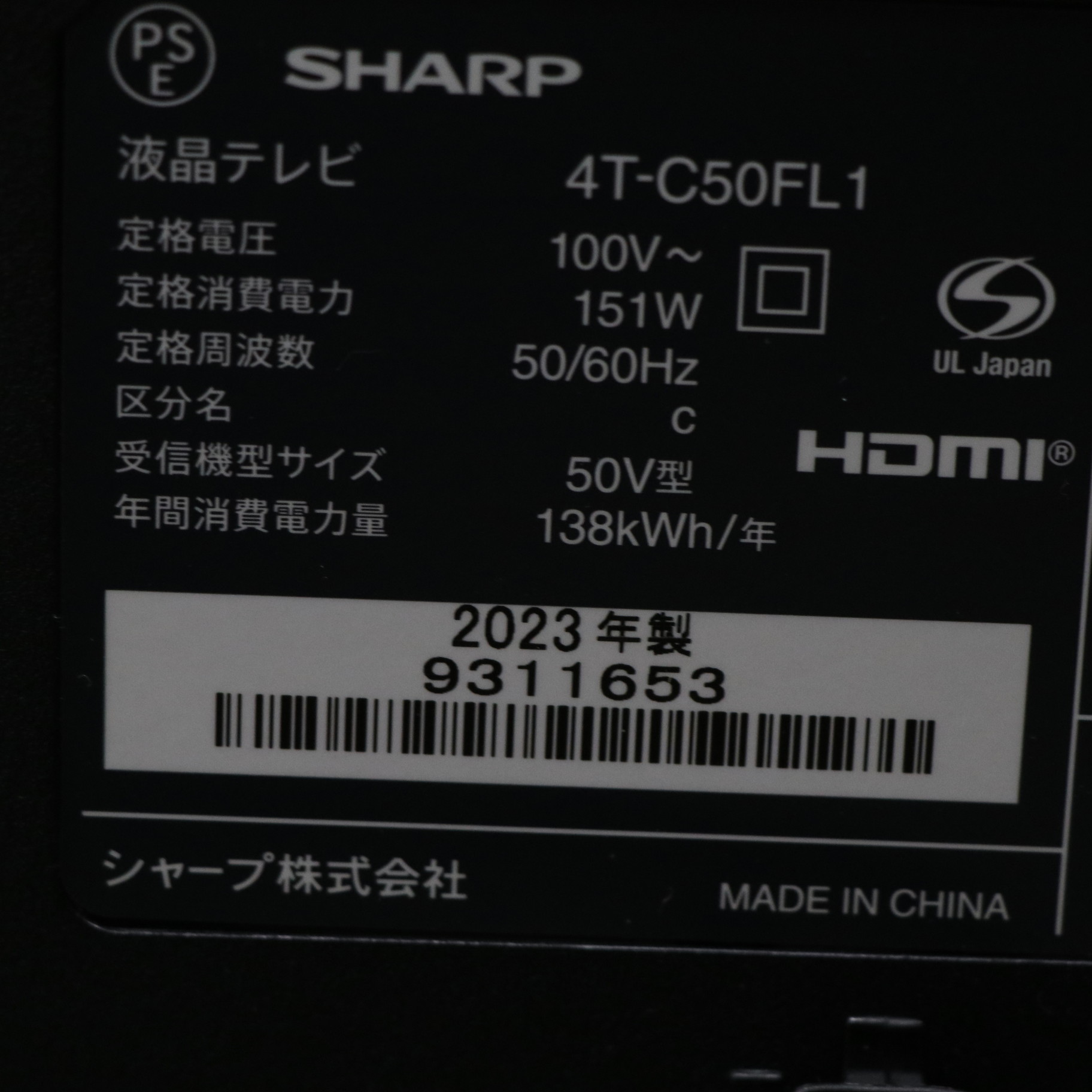 〔展示品〕 液晶テレビ AQUOS(アクオス) 4T-C50FL1 [50V型 /Bluetooth対応 /4K対応 /BS・CS 4Kチューナー内蔵 /YouTube対応]