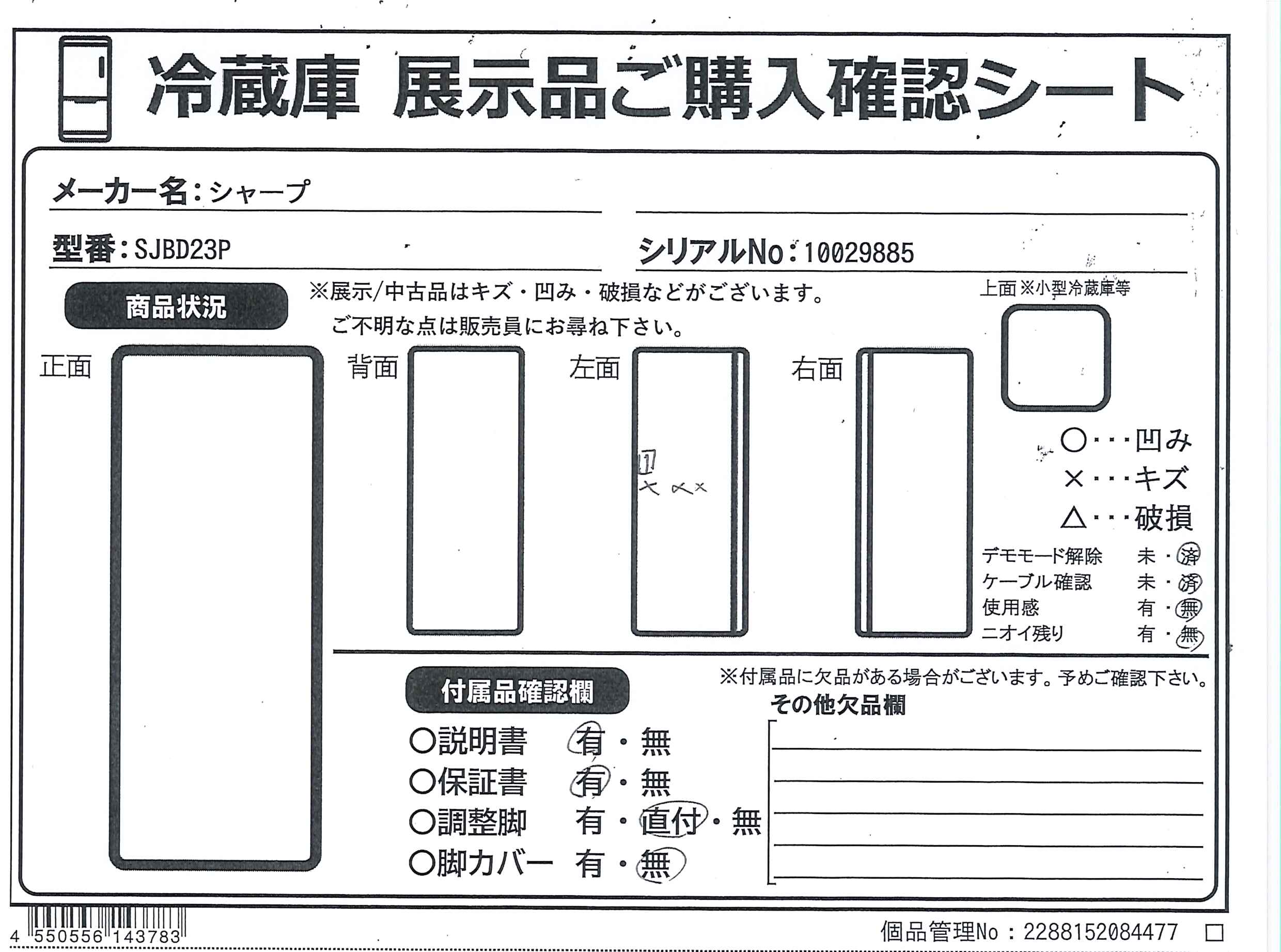 中古商品ランクについて 付属品・商品状態について 〔付属品〕説明書、たまご仕切り、製氷皿、貯氷ケース、調節脚×2、蒸発皿