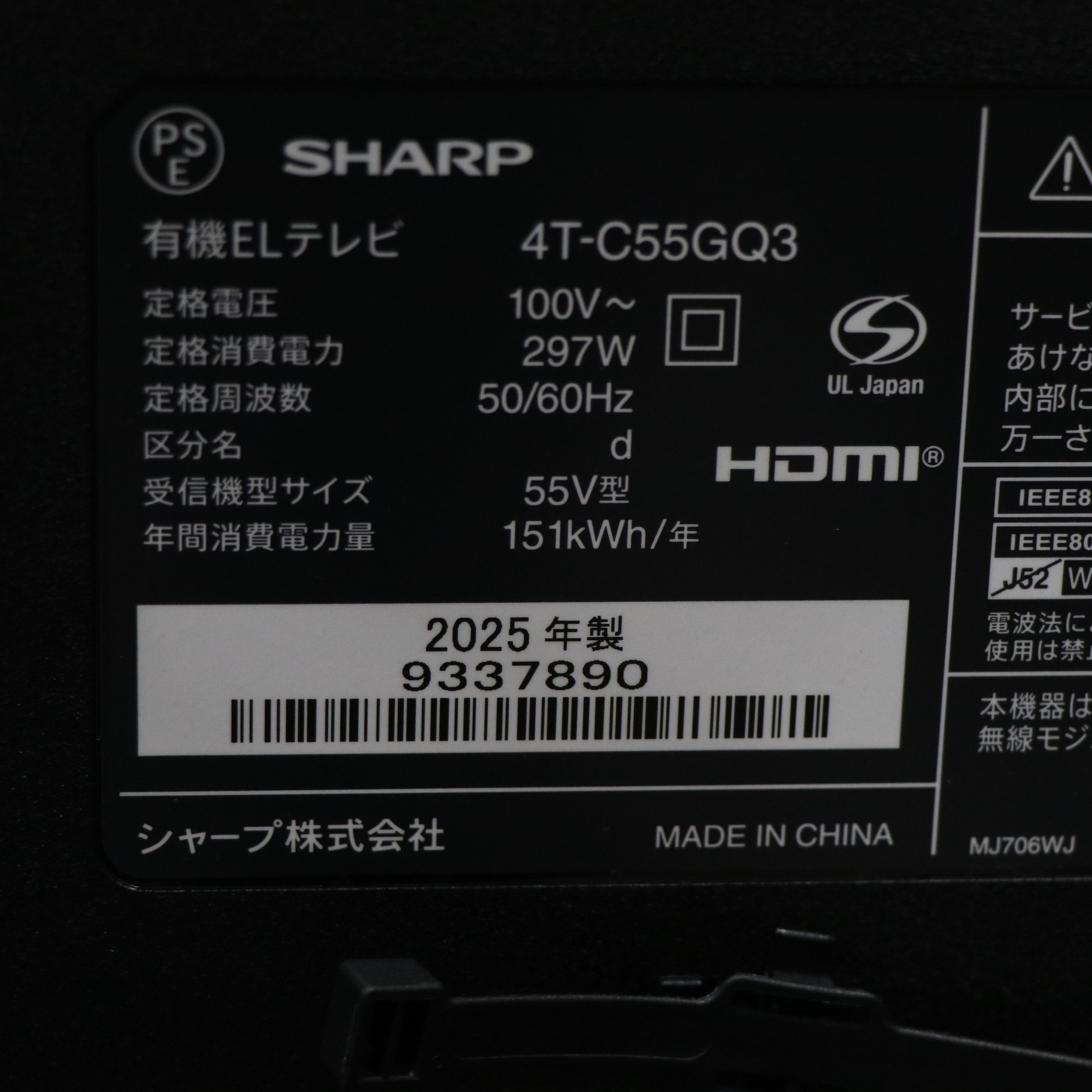 ![SHARP(シャープ) 有機ELテレビ AQUOS 4T-C55GQ3 [55V型 /Bluetooth対応 /4K対応 /BS・CS 4Kチューナー内蔵 /YouTube対応]](https://image.sofmap.com/images/product/large/4550556127097.jpg)