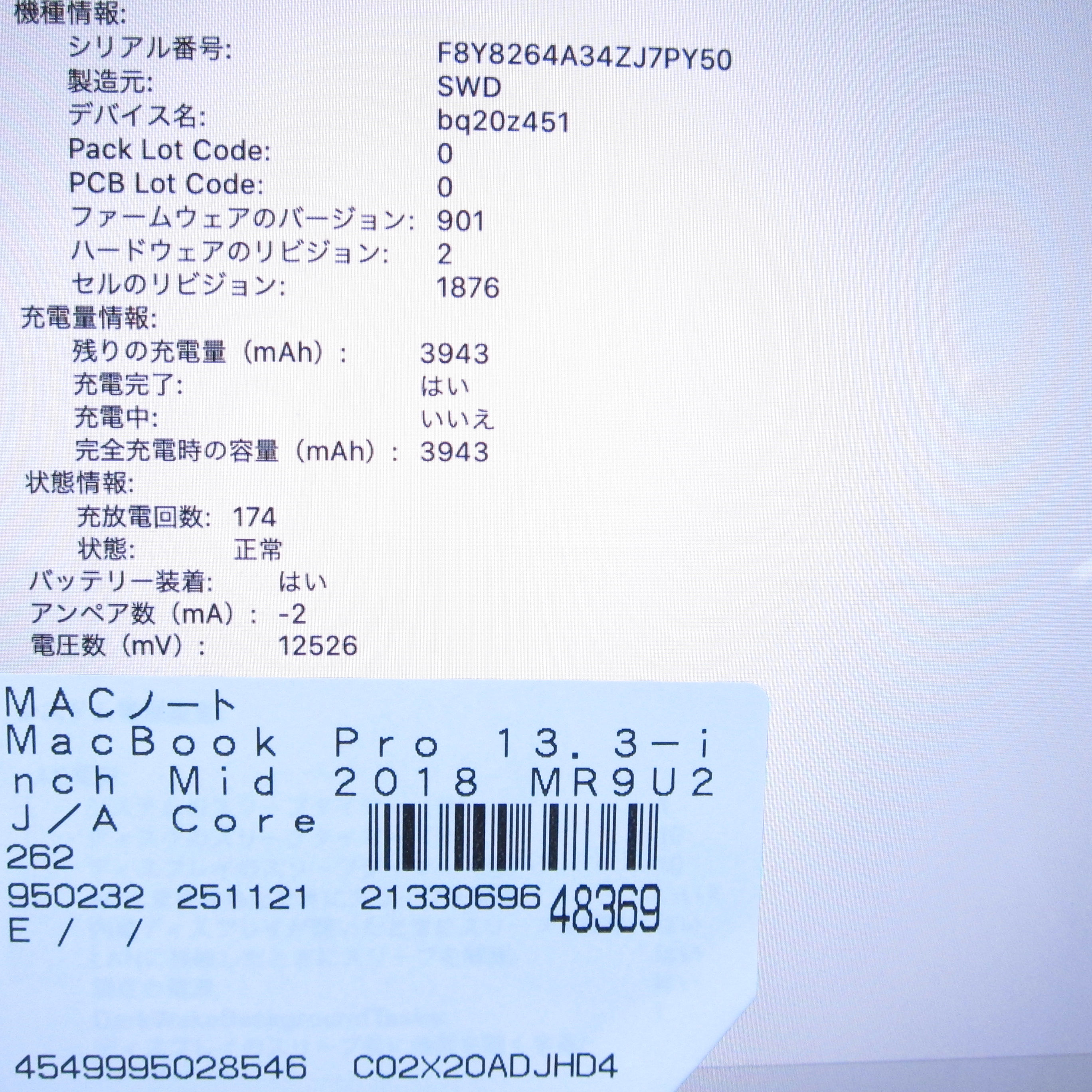 商品名 〔中古品〕 MacBook Pro 13.3-inch Mid-2018 MR9U2J/A Core_i5 2.3GHz 16GB SSD256GB シルバー 〔10.15 Catalina〕 [グラフィック:Intel Iris Plus Graphics 655(CPU内蔵)/JISキーボード]