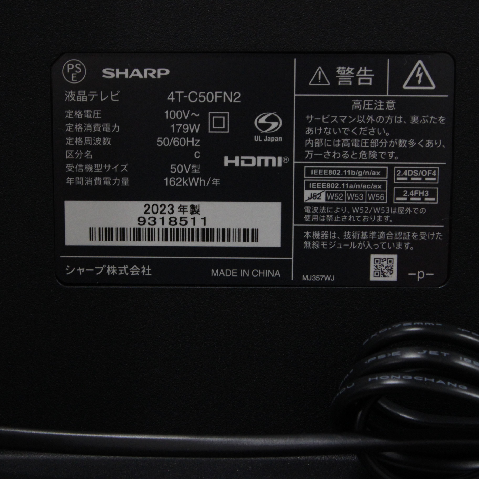 〔展示品〕 液晶テレビ AQUOS(アクオス) 4T-C50FN2 [50V型 /Bluetooth対応 /4K対応 /BS・CS 4Kチューナー内蔵 /YouTube対応]