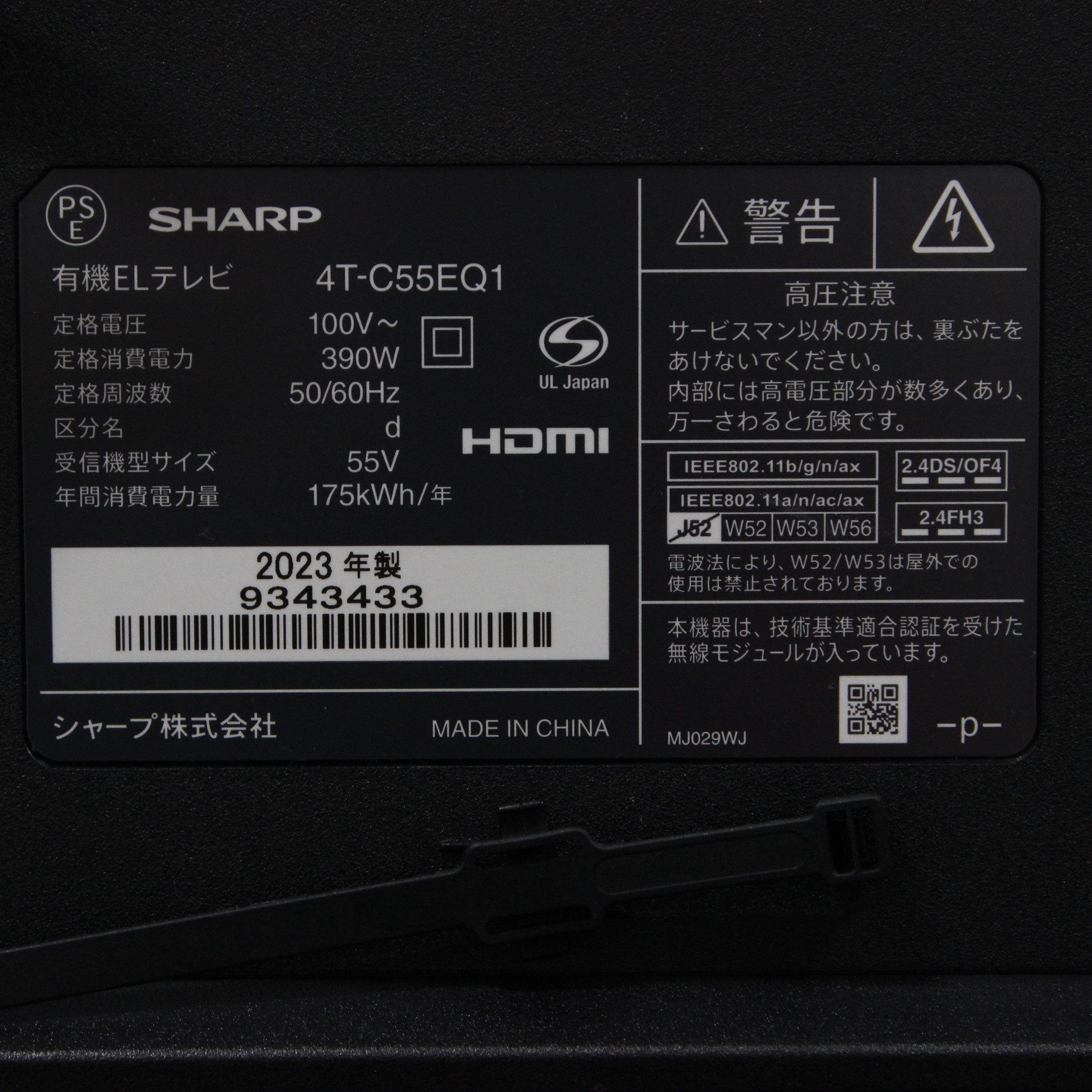 〔展示品〕 有機ELテレビ AQUOS(アクオス) 4T-C55EQ1 [55V型 /Bluetooth対応 /4K対応 /BS・CS 4Kチューナー内蔵 /YouTube対応]