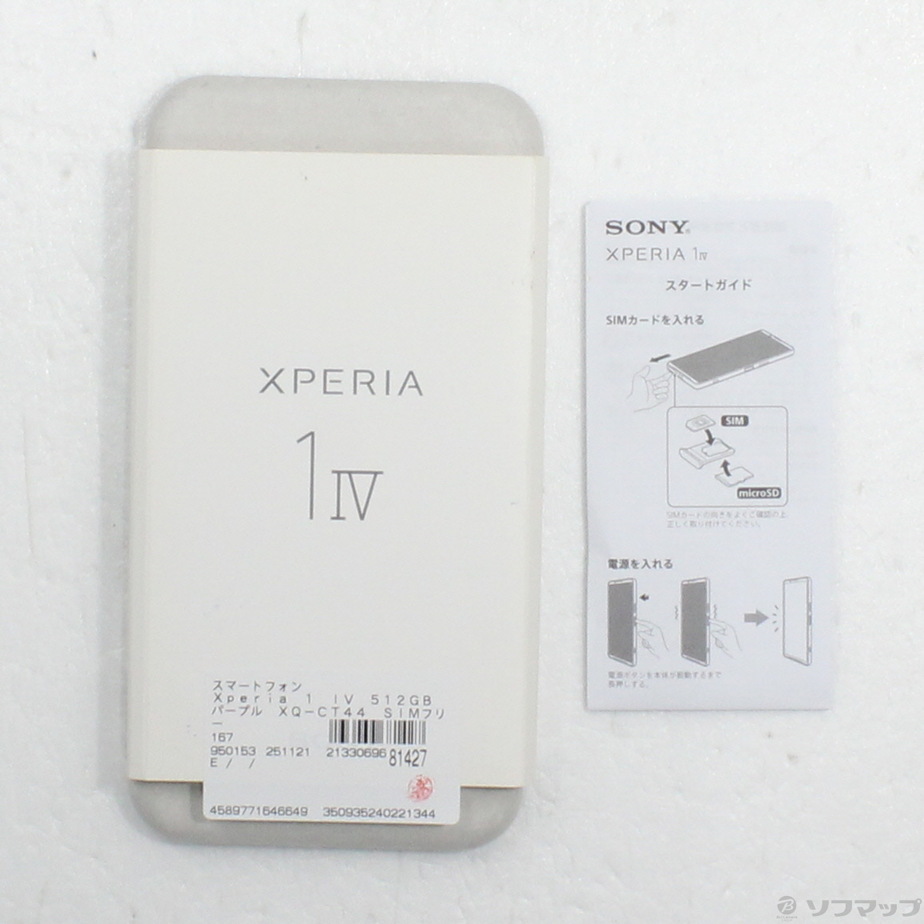 〔中古品〕 Xperia 1 IV 512GB パープル XQ-CT44 SIMフリー [6.5インチ有機EL/Snapdragon 8 Gen 1]