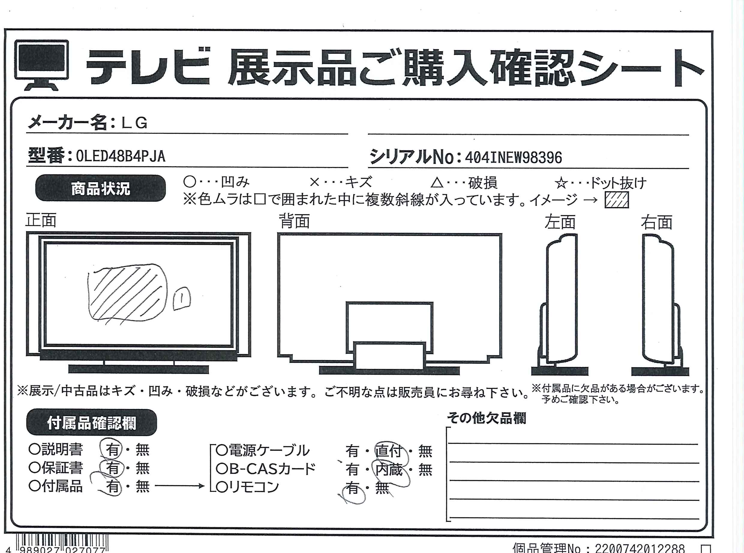 ![LG(エルジー) 有機ELテレビ OLED48B4PJA [48V型 /Bluetooth対応 /4K対応 /BS・CS 4Kチューナー内蔵 /YouTube対応]](https://image.sofmap.com/images/product/large/4989027027077.jpg)