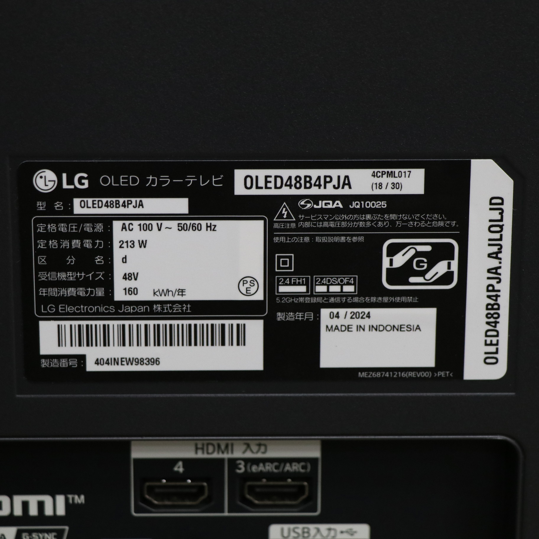 〔展示品〕 有機ELテレビ OLED48B4PJA [48V型 /Bluetooth対応 /4K対応 /BS・CS 4Kチューナー内蔵 /YouTube対応]