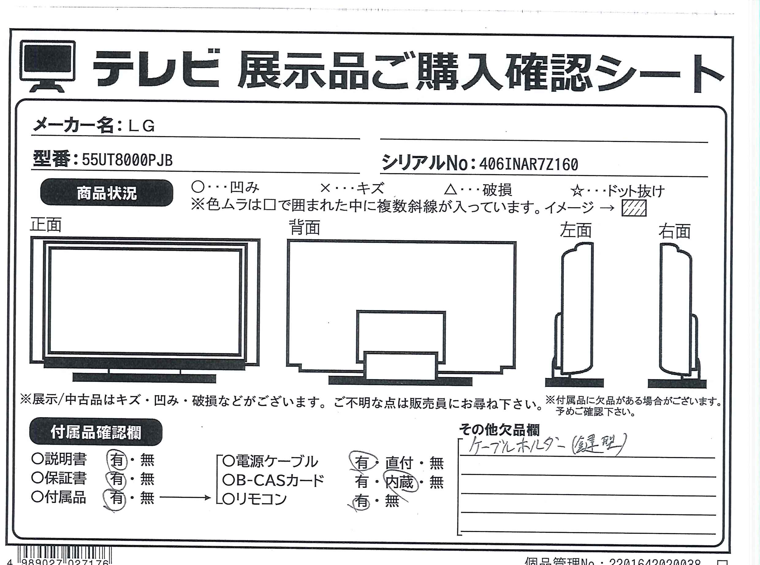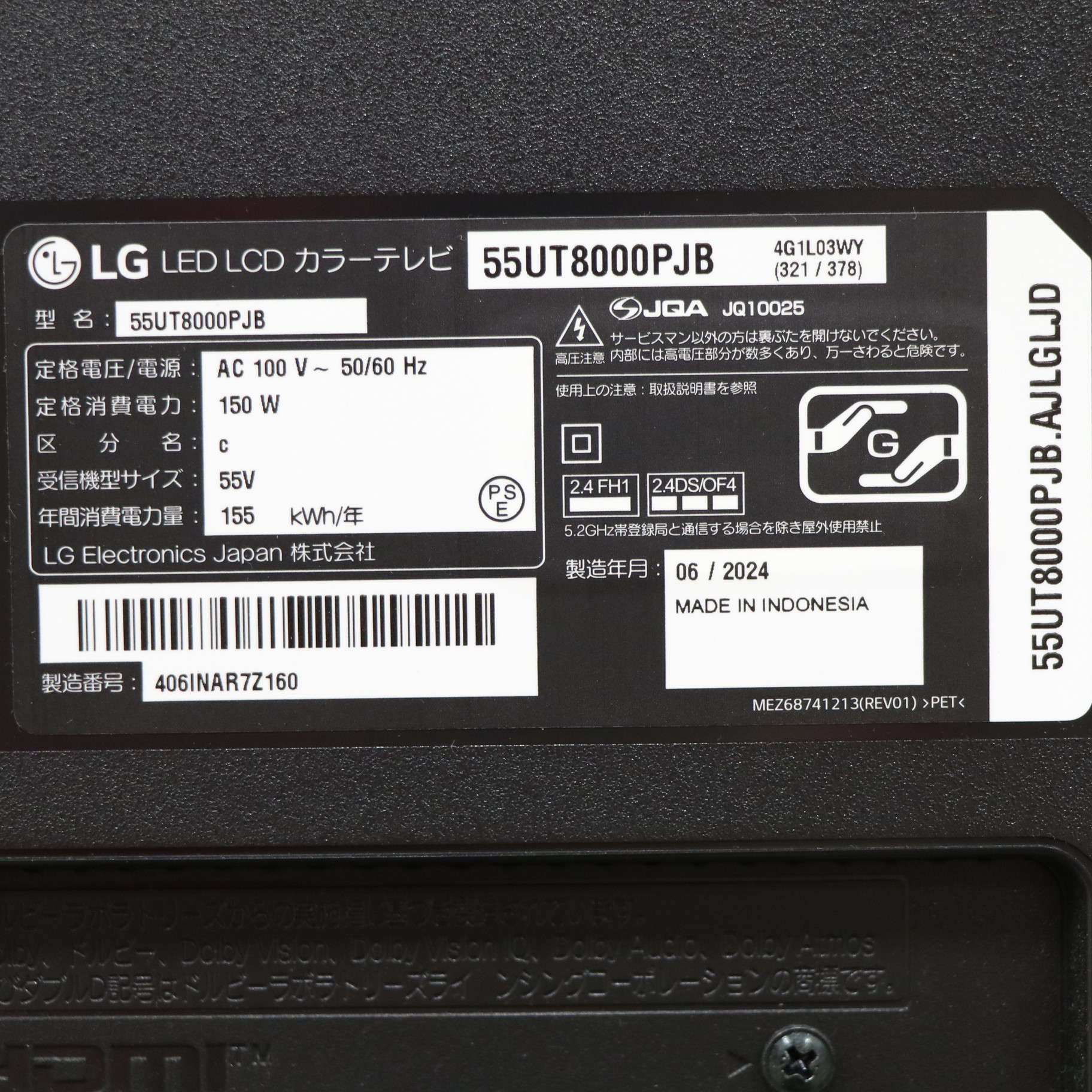 〔展示品〕 液晶テレビ 55UT8000PJB [55V型 /Bluetooth対応 /4K対応 /BS・CS 4Kチューナー内蔵 /YouTube対応]