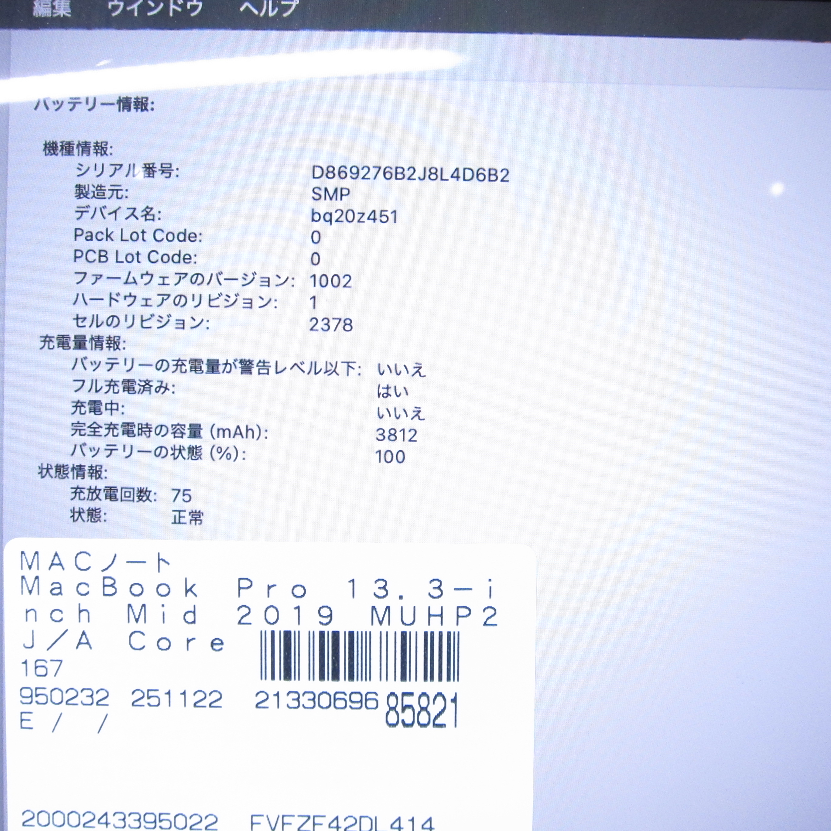 〔中古品〕 MacBook Pro 13.3-inch Mid-2019 MUHP2J/A Core_i7 1.7GHz 8GB SSD512GB スペースグレイ 〔15.7 Sequoia〕 [グラフィック:Intel Iris Plus Graphics 645(CPU内蔵)/JISキーボード]