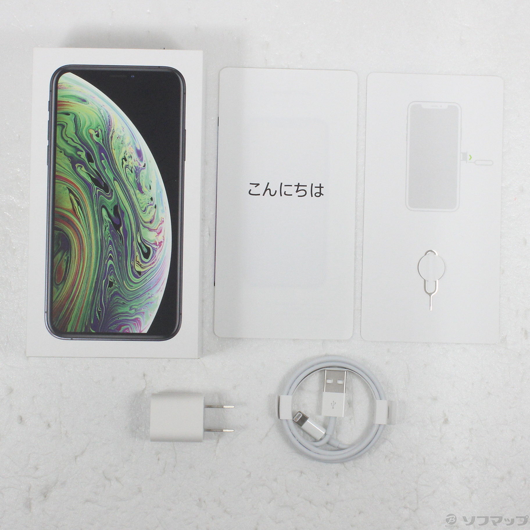 〔付属品〕USB電源アダプタ、USB-A - Lightningケーブル、SIMトレイ、外箱