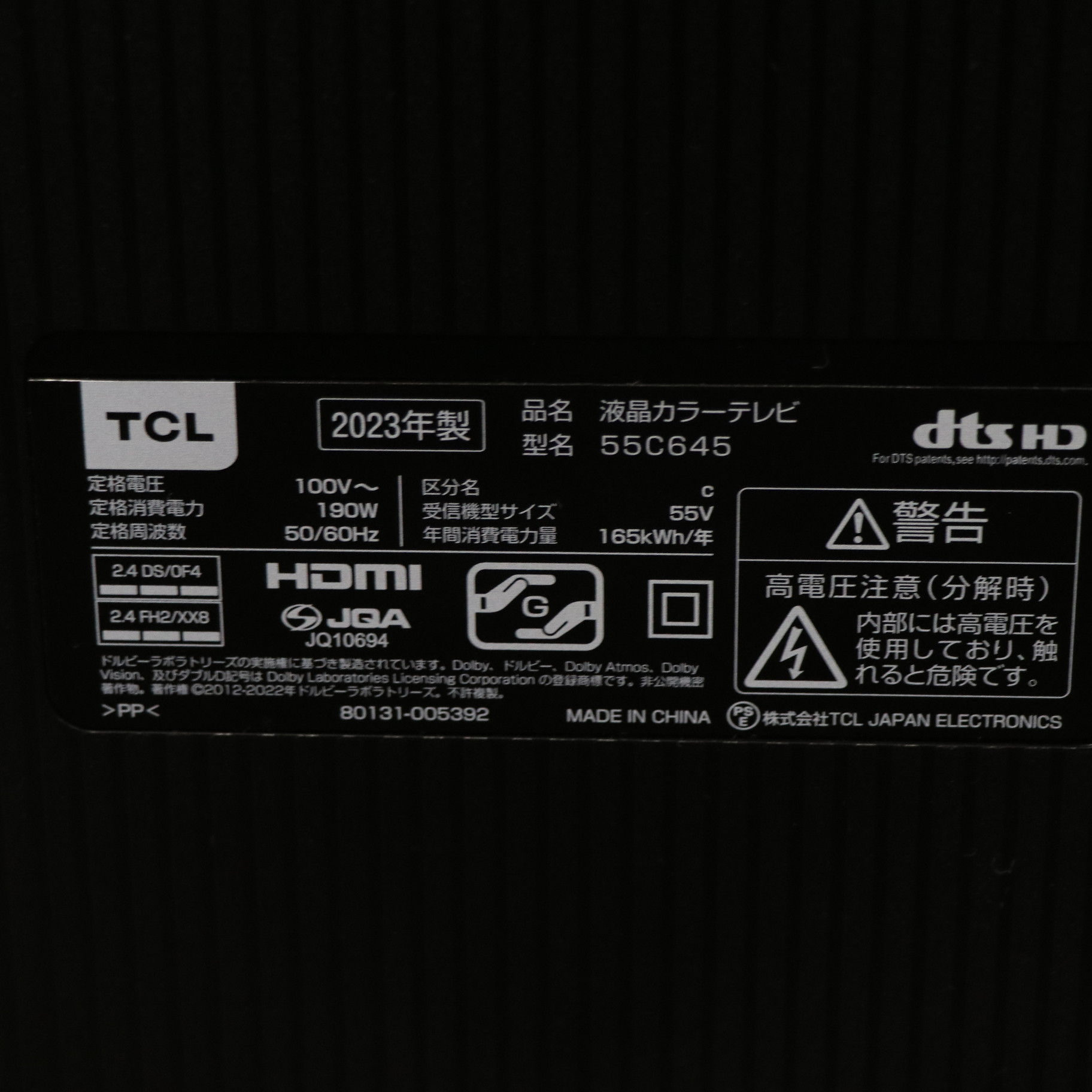 〔展示品〕 液晶テレビ C645シリーズ 55C645 [55V型 /4K対応 /BS・CS 4Kチューナー内蔵 /YouTube対応]