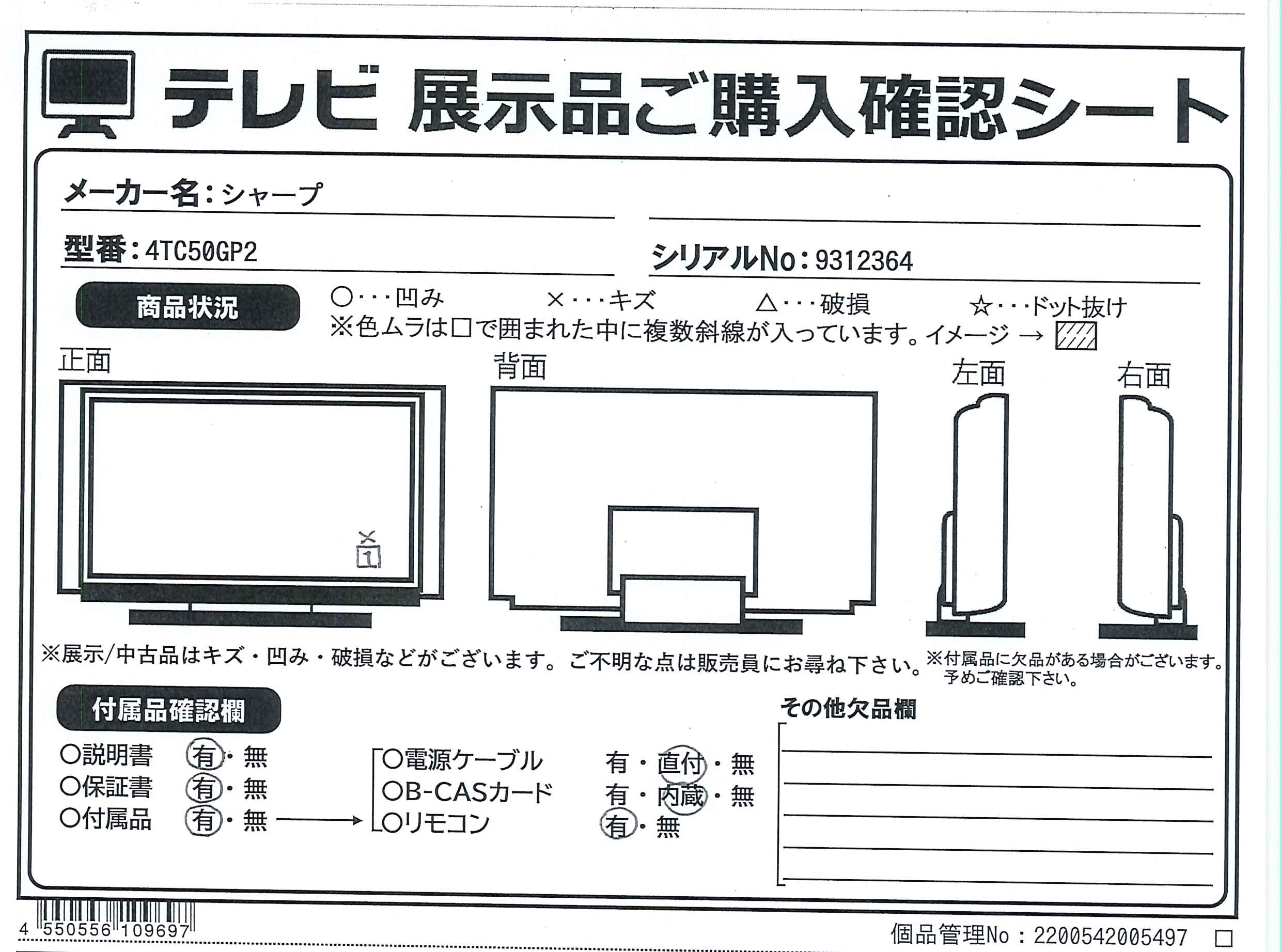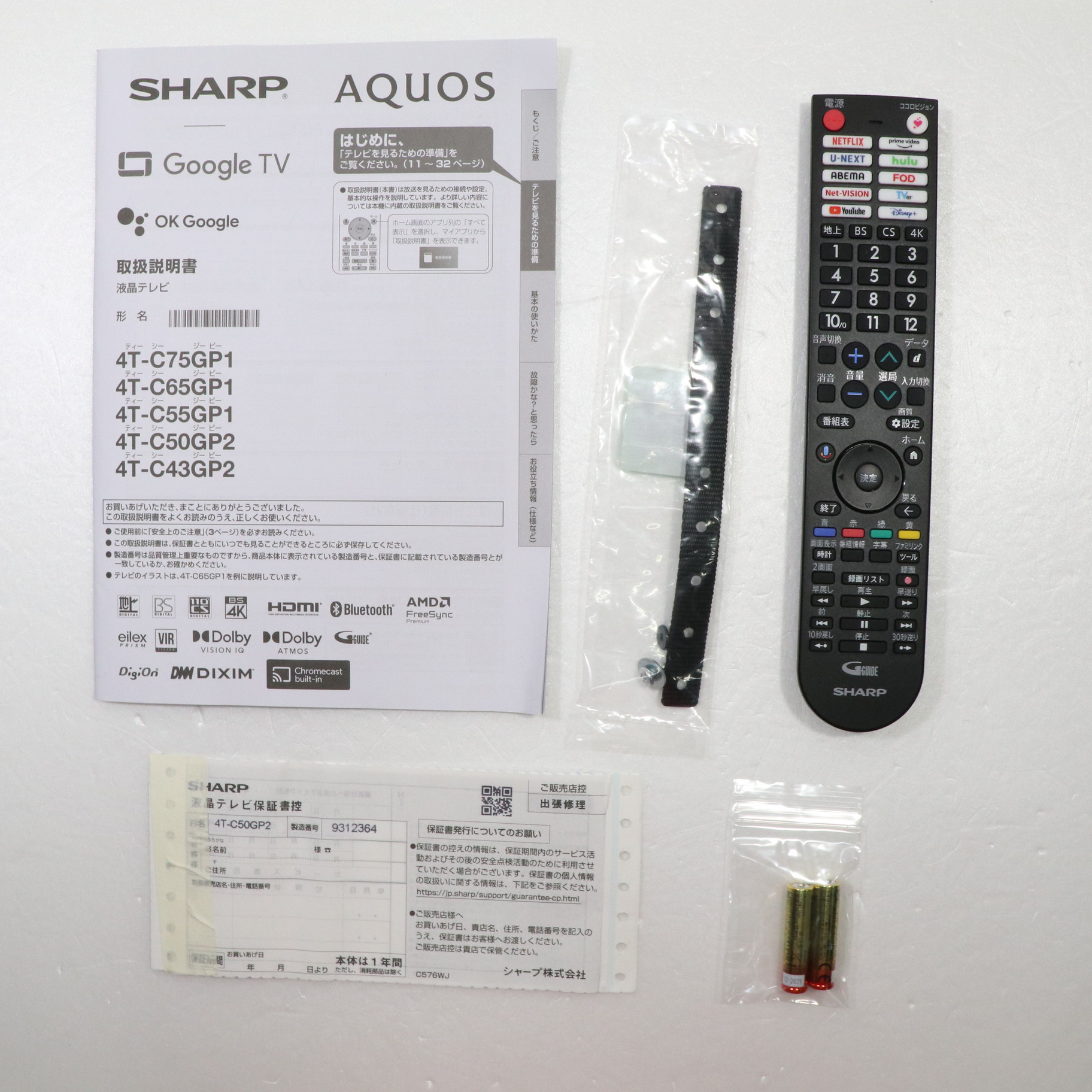 中古商品ランクについて 付属品・商品状態について 〔付属品〕取扱説明書、かんたん使い方ガイド、リモコン、単4形乾電池×2、スタンド取付金具、スタンドカバー、スタンドベース、スタンド組立用ネジ×4 M5(長さ12mm)、スタンド取付用ネジ×4 M5(長さ12mm)、転倒防止ベルト、転倒防止ベルトテレビ取り付け用ネジ(黒) M4(長さ 8mm)、転倒防止ベルトテレビ台固定用ネジ(シルバー) M4(長さ 16mm)、スタンド回転ロックネジ