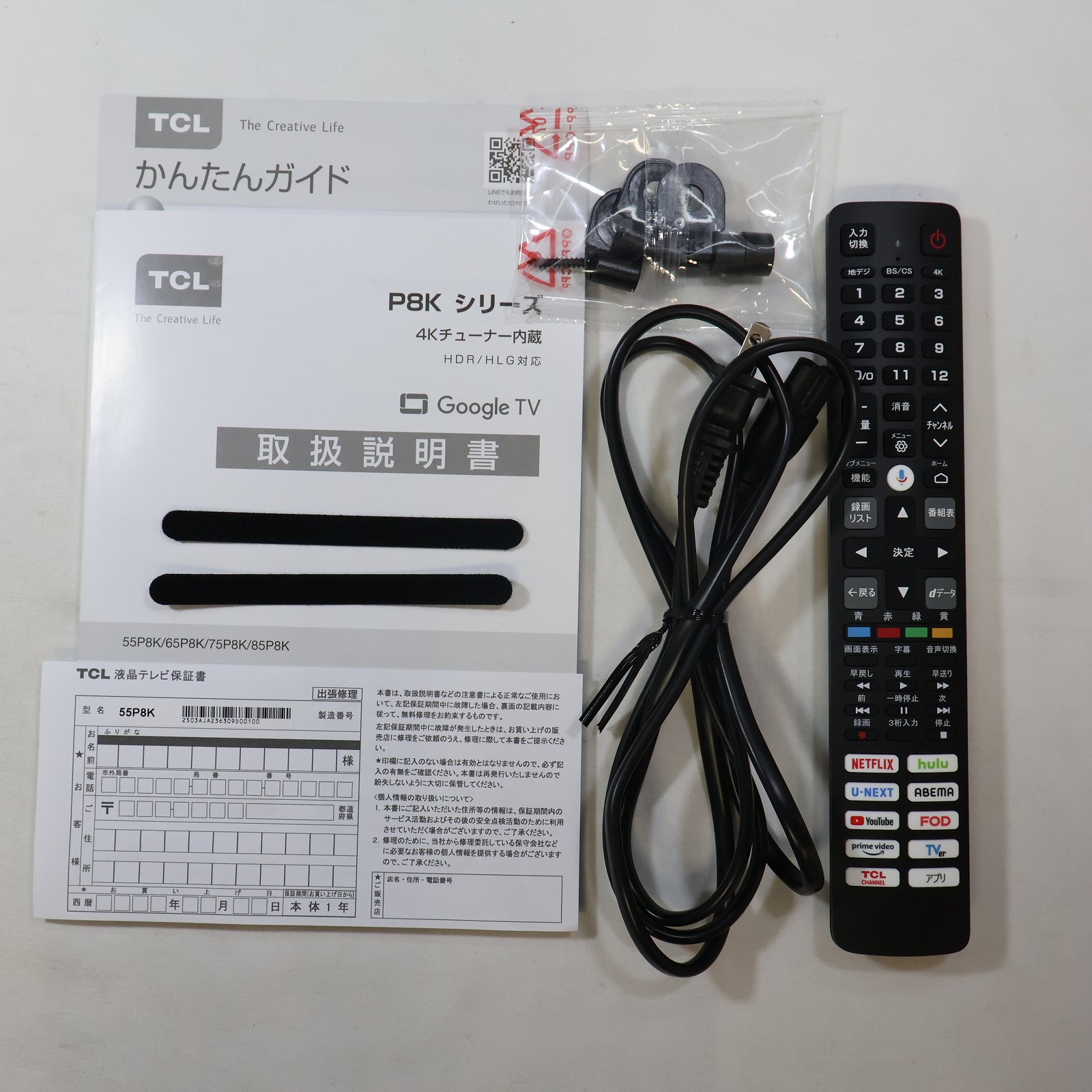 中古商品ランクについて 付属品・商品状態について 〔付属品〕説明書、リモコン、電源コード、転倒落下防止用ST4ネジ1本、転倒落下防止用クリップ3個、スタンド一式、ガイドスペーサー x 2、マジックテープ x 2