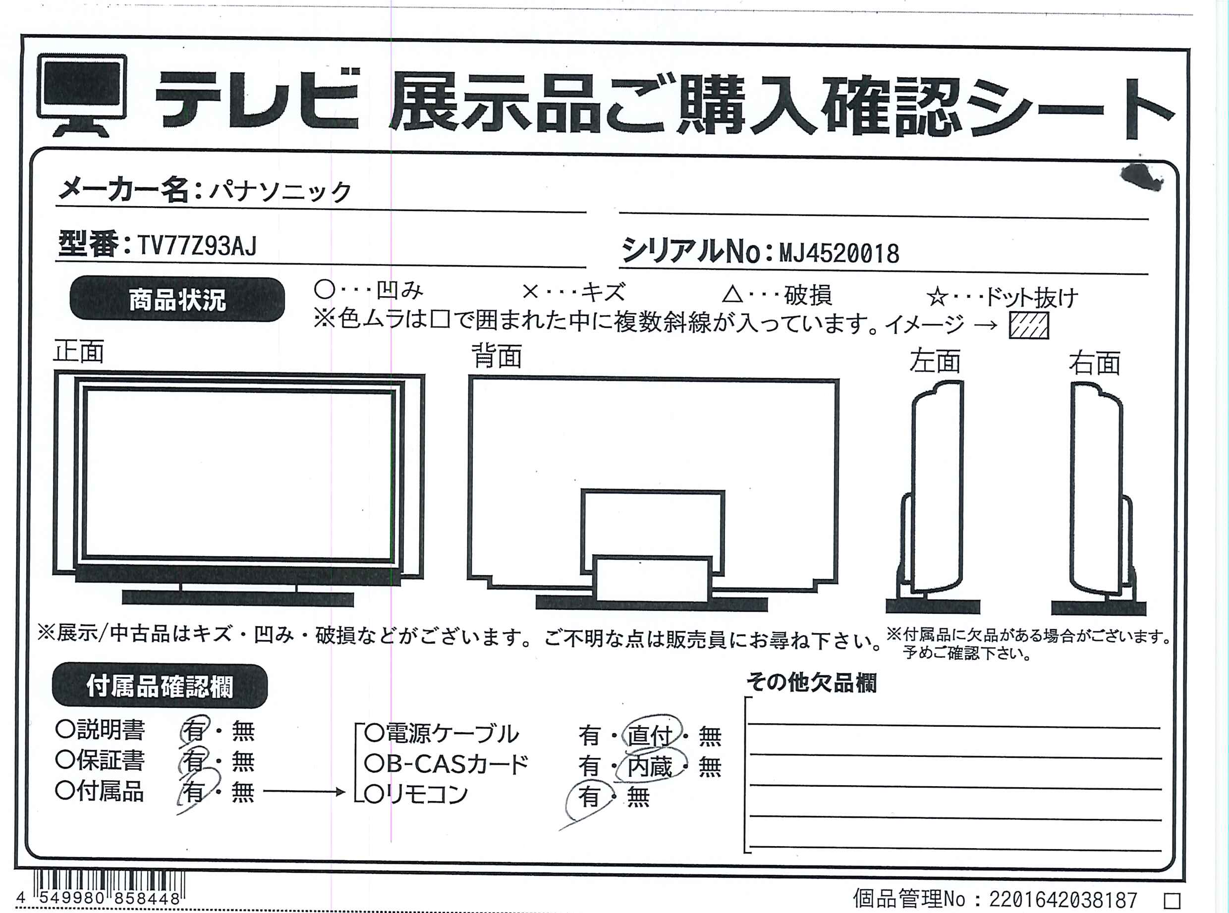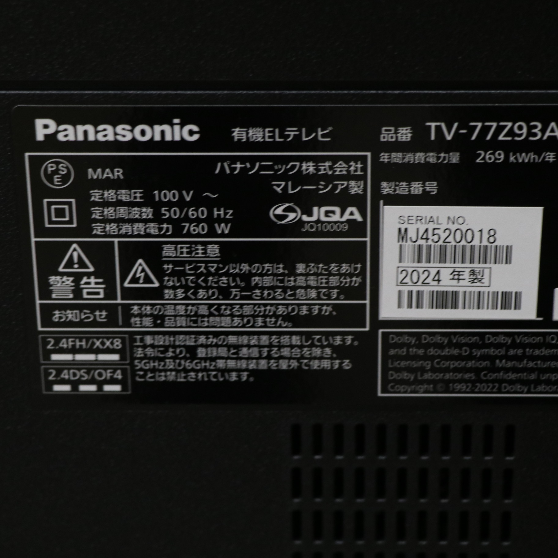 〔展示品〕 VIERA(ビエラ) TV-77Z93AJ [77V型 /Bluetooth対応 /4K対応 /BS・CS 4Kチューナー内蔵 /YouTube対応]