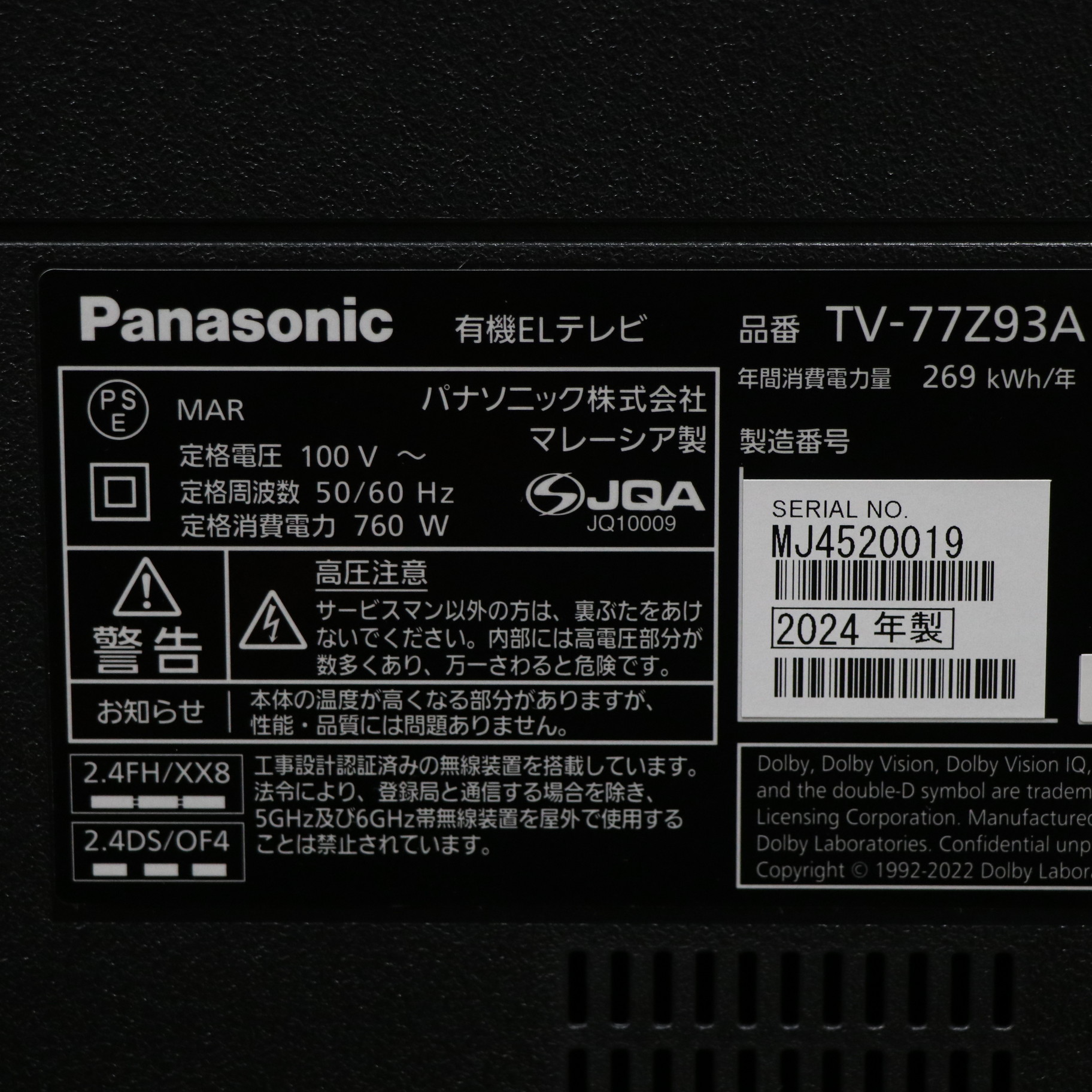 〔展示品〕 VIERA(ビエラ) TV-77Z93AJ [77V型 /Bluetooth対応 /4K対応 /BS・CS 4Kチューナー内蔵 /YouTube対応]