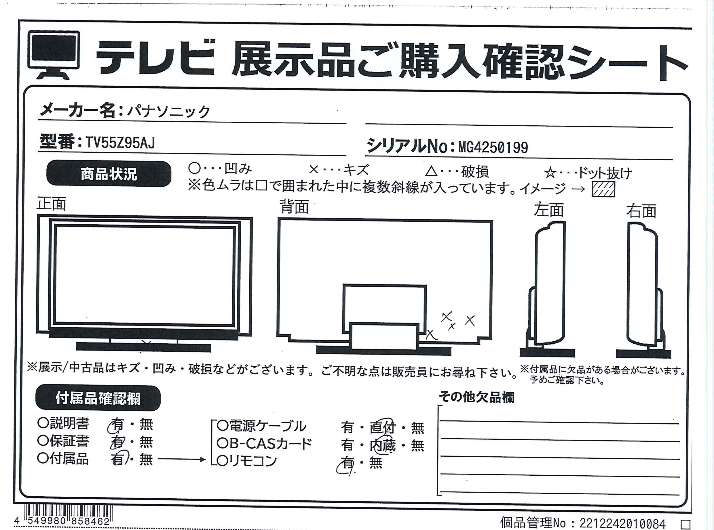 〔展示品〕 有機ELテレビ VIERA(ビエラ) TV-55Z95AJ [55V型 /Bluetooth対応 /4K対応 /BS・CS 4Kチューナー内蔵 /YouTube対応]