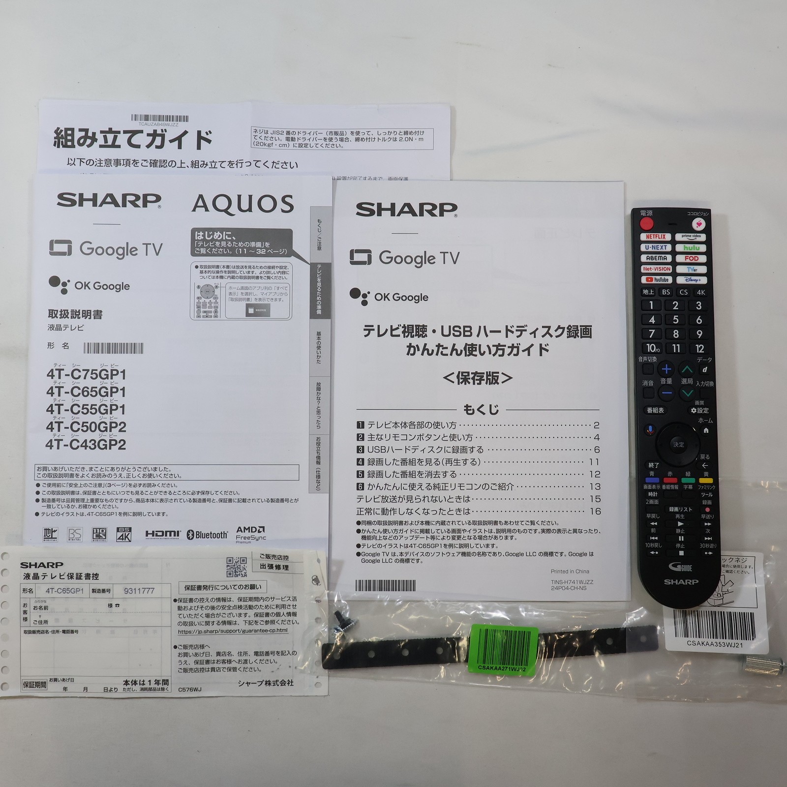〔展示品〕 液晶テレビ AQUOS ブラック 4T-C65GP1 [65V型 /4K対応 /BS・CS 4Kチューナー内蔵 /YouTube対応]
