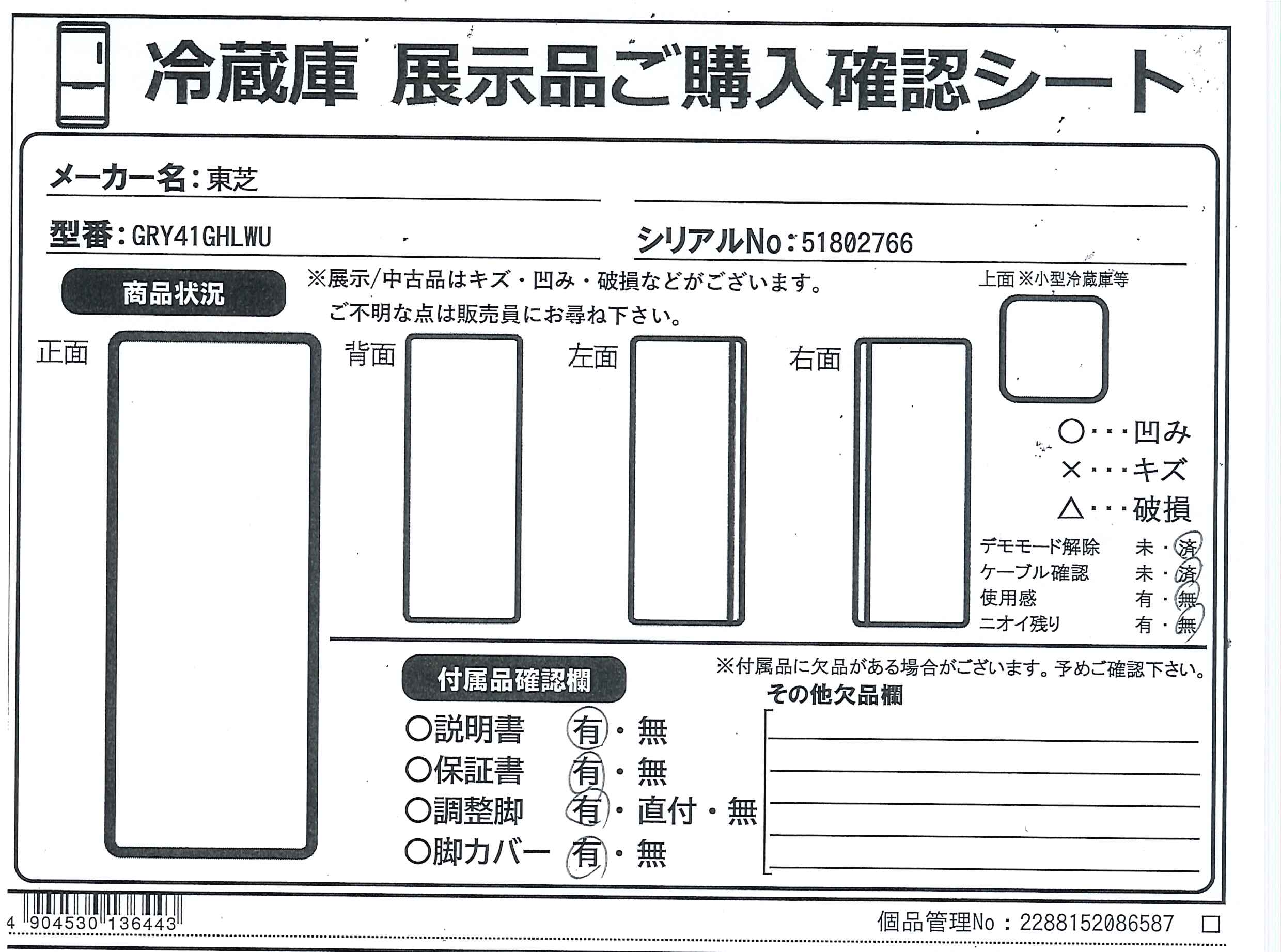 中古商品ランクについて 付属品・商品状態について 〔付属品〕説明書、調整脚×2、前面グリル、卵スタンド、おそうじ口のフタ、アルミトレイ、給水タンク、アイスシャベル