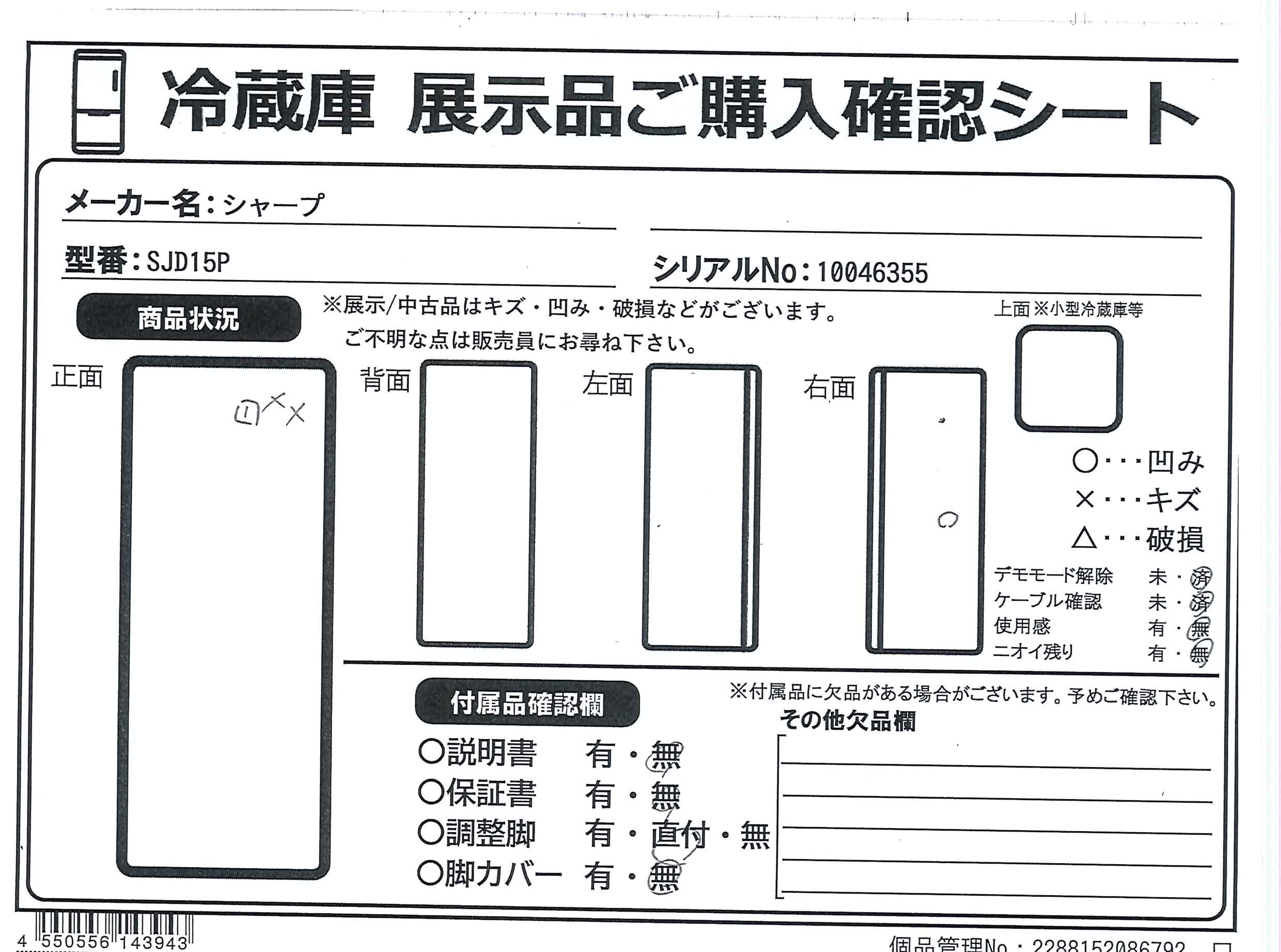 中古商品ランクについて 付属品・商品状態について 〔付属品〕フリーケース、製氷皿、貯氷ケース、調節脚×2、蒸発皿