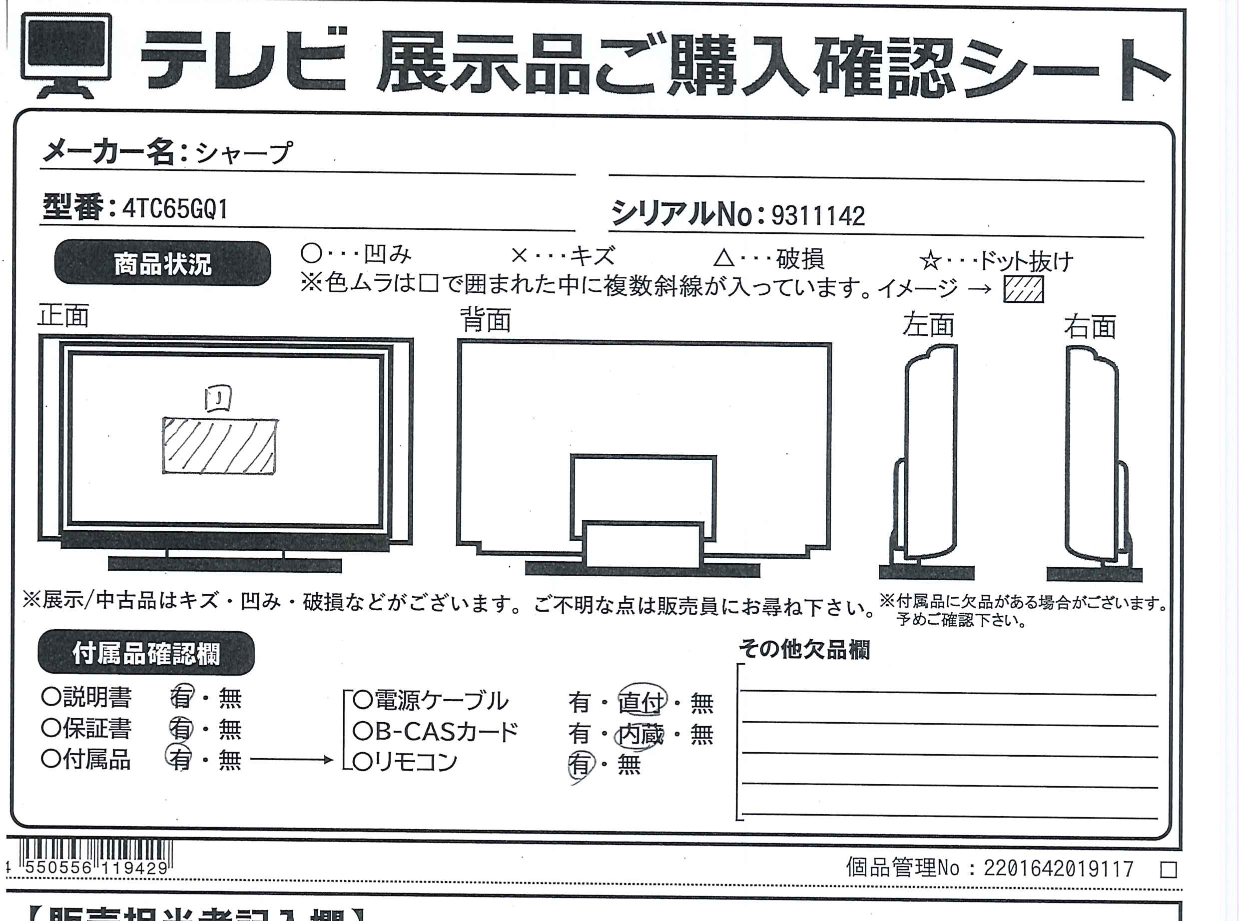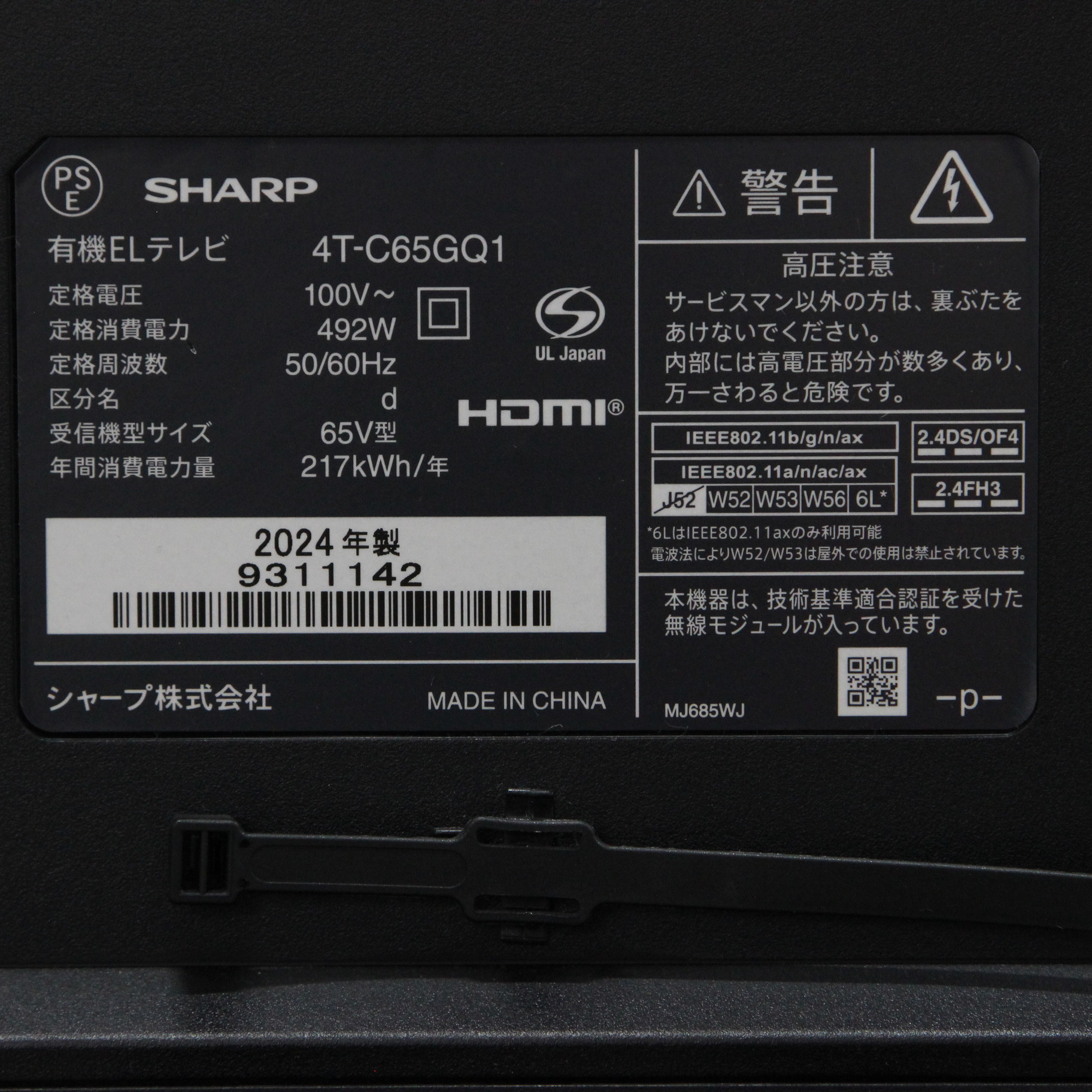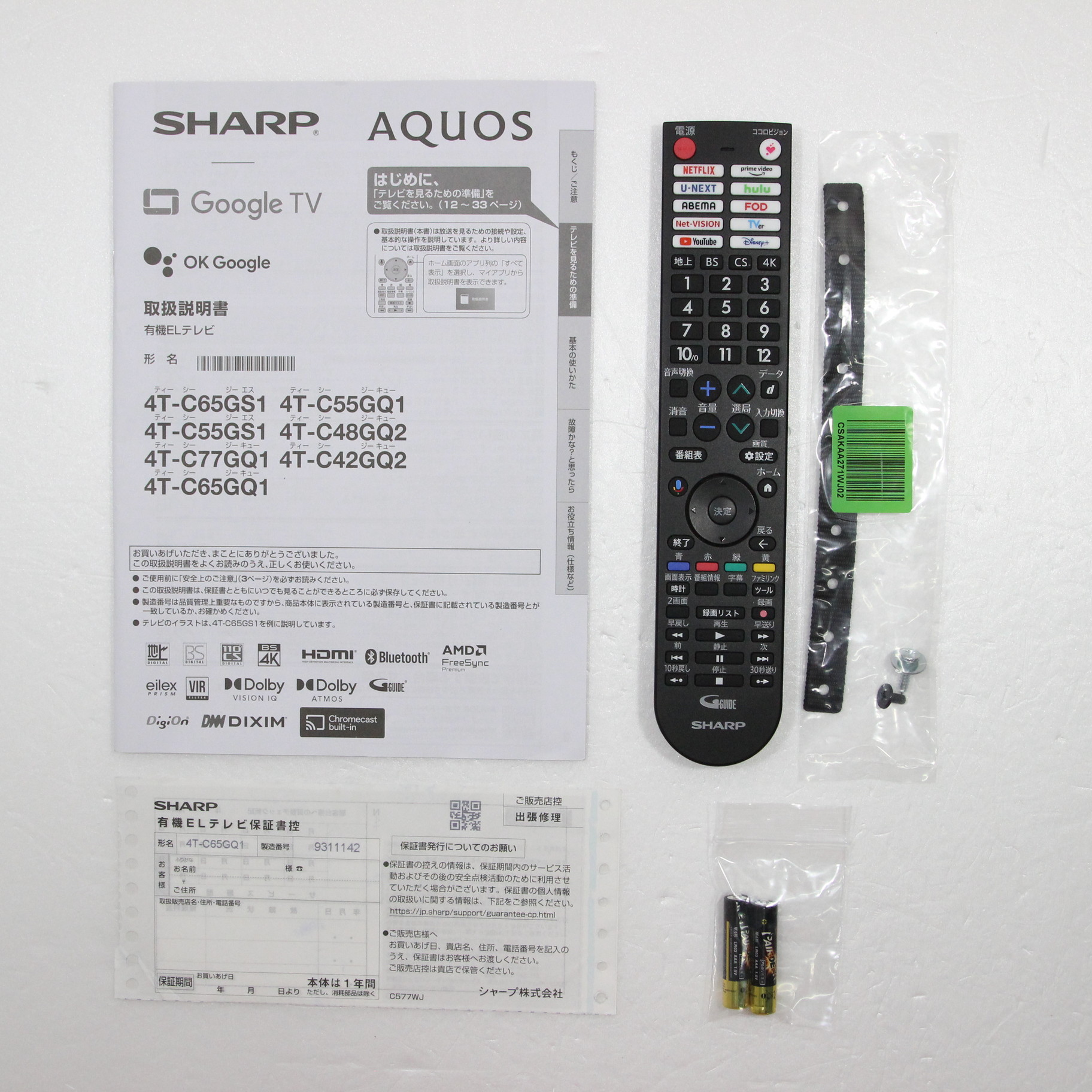 〔展示品〕 有機ELテレビ AQUOS ブラック 4T-C65GQ1 [65V型 /Bluetooth対応 /4K対応 /BS・CS 4Kチューナー内蔵 /YouTube対応]