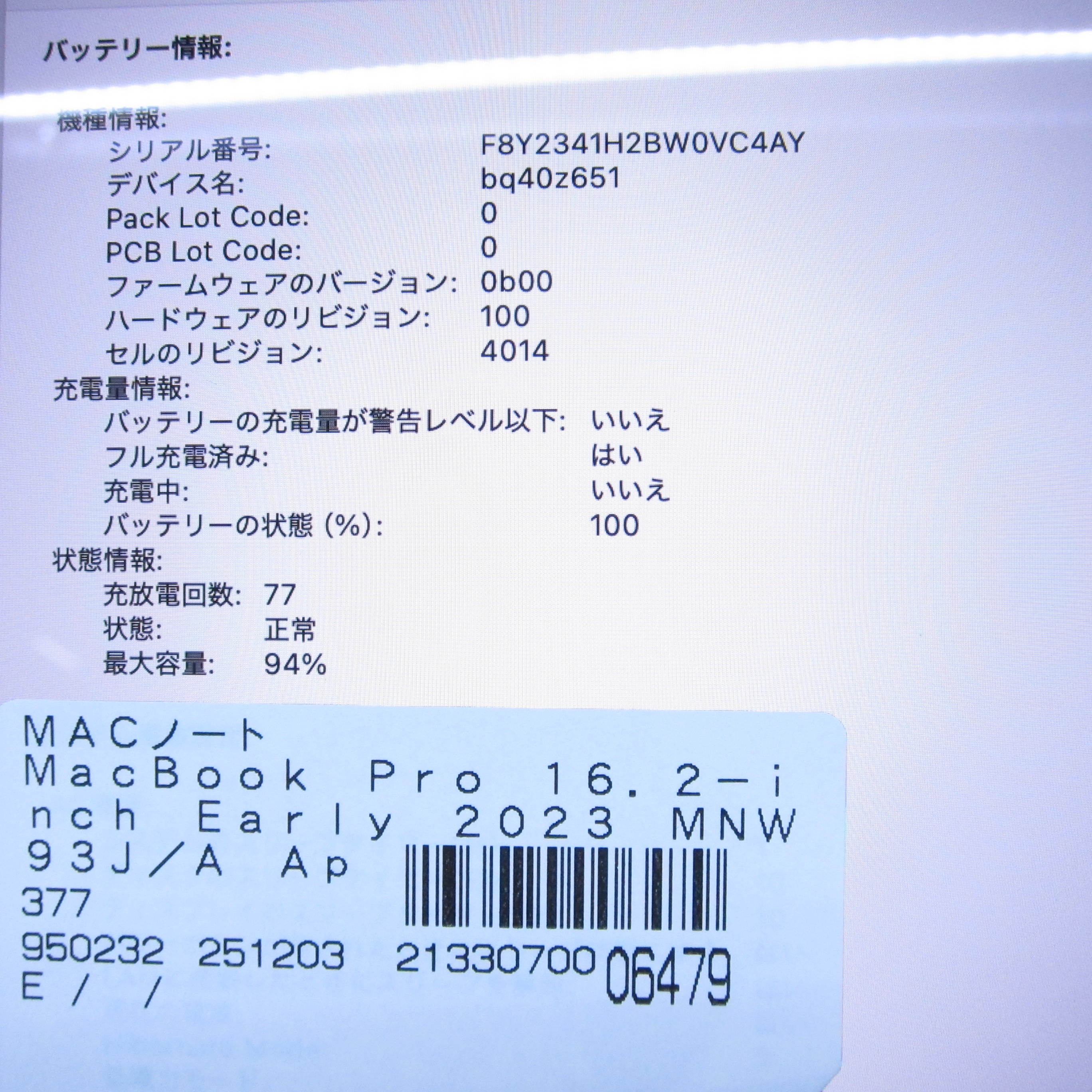 〔中古品〕 MacBook Pro 16.2-inch Early-2023 MNW93J/A Apple M2 Pro 12コアCPU_19コアGPU 16GB SSD1TB スペースグレイ 〔15.3 Sequoia〕 [グラフィック:オンボード/USキーボード]