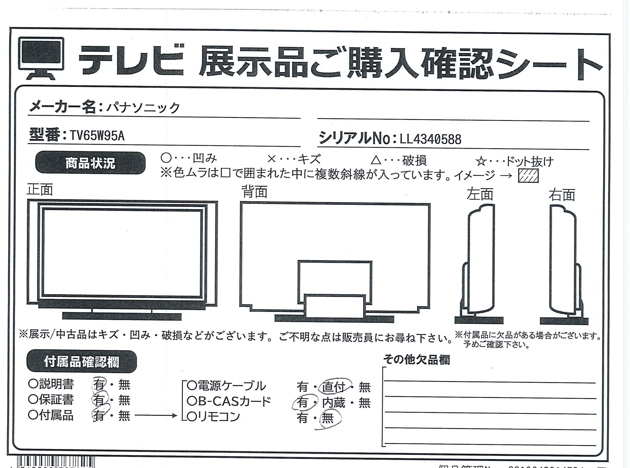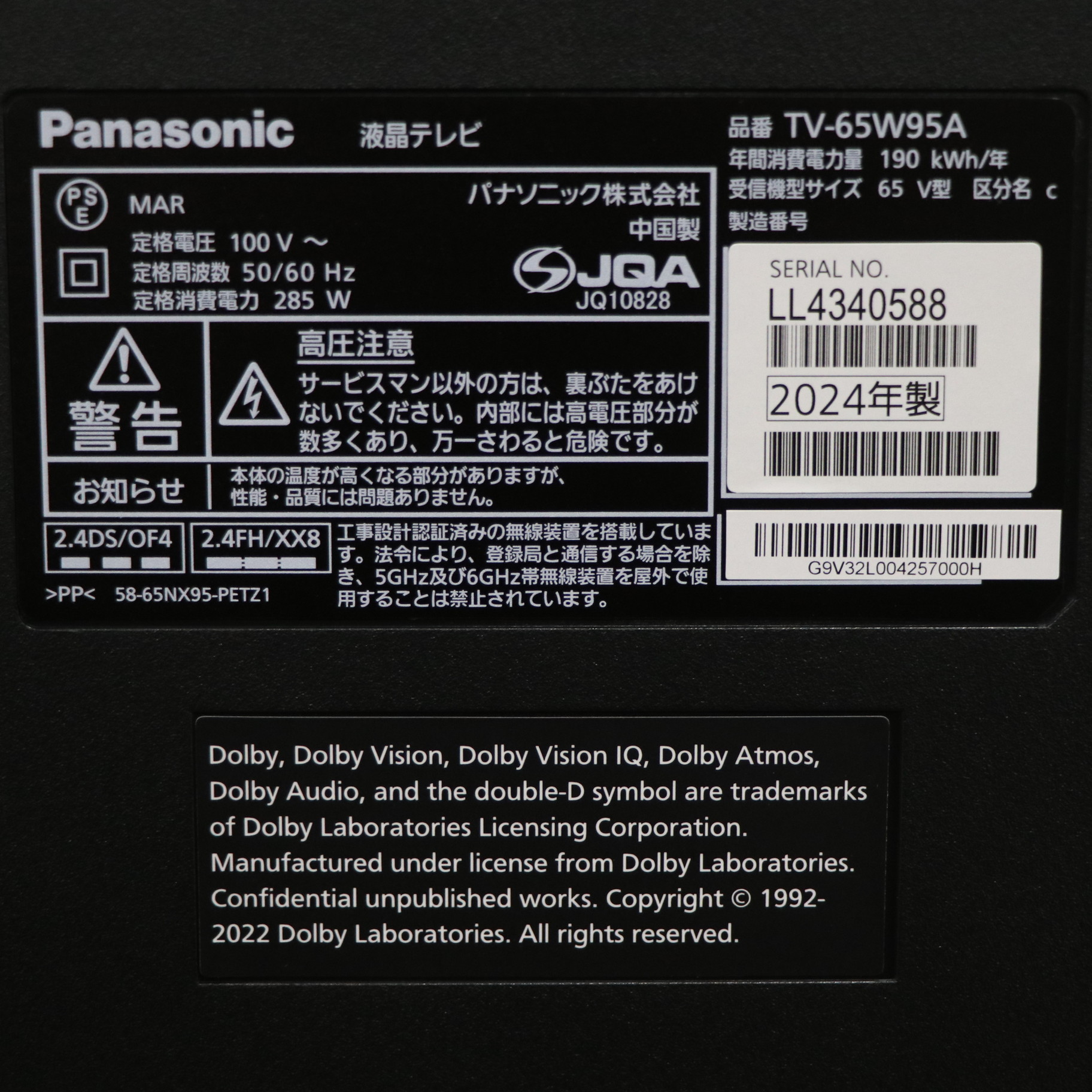 〔展示品〕 液晶テレビ VIERA(ビエラ) TV-65W95A [65V型 /Bluetooth対応 /4K対応 /YouTube対応]