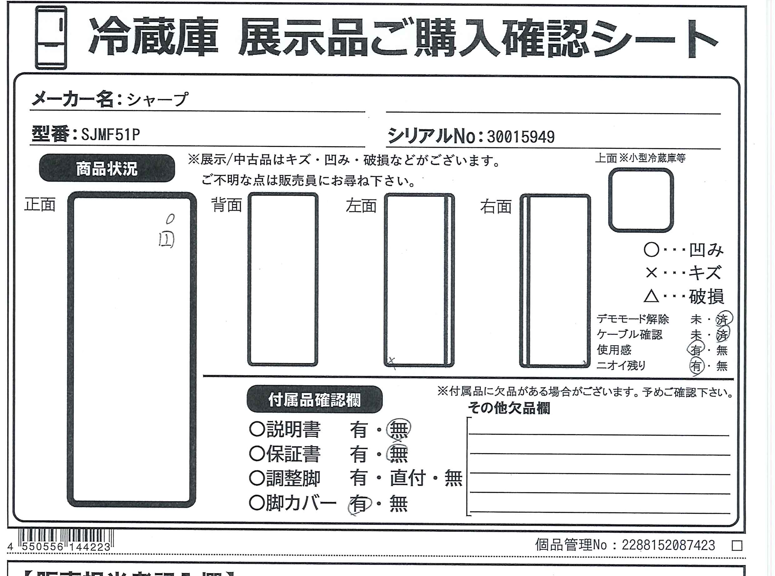 中古商品ランクについて 付属品・商品状態について 〔付属品〕調節脚×2、ベースカバー、給水タンク一式、たまご仕切り、フレキシブルポケット、野菜ケーストレー、アイスシャベル、フレキシブルトレー、仕切り×2