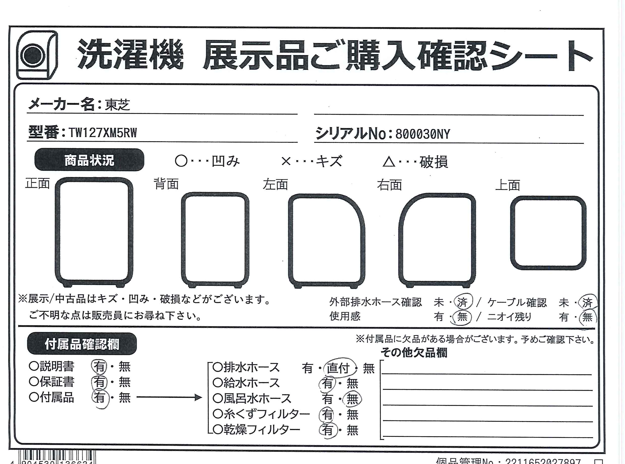中古商品ランクについて 付属品・商品状態について 〔付属品〕説明書、振付説明書、工具、安全カバー一式、給水ホース、ホースキャップ、排水ホースバンド×2、ホースキャップ