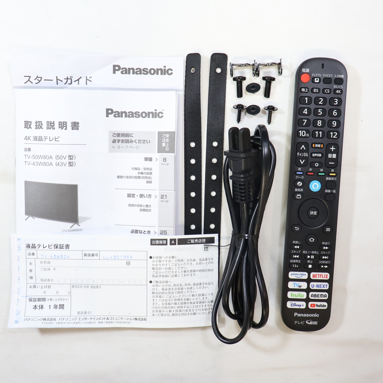 〔展示品〕 液晶テレビ VIERA(ビエラ) TV-43W80A [43V型 /Bluetooth対応 /4K対応 /YouTube対応]