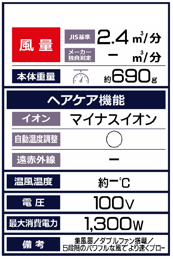 〔展示品〕 ダブルファンドライヤー モンスター レッド KHD-W915/R