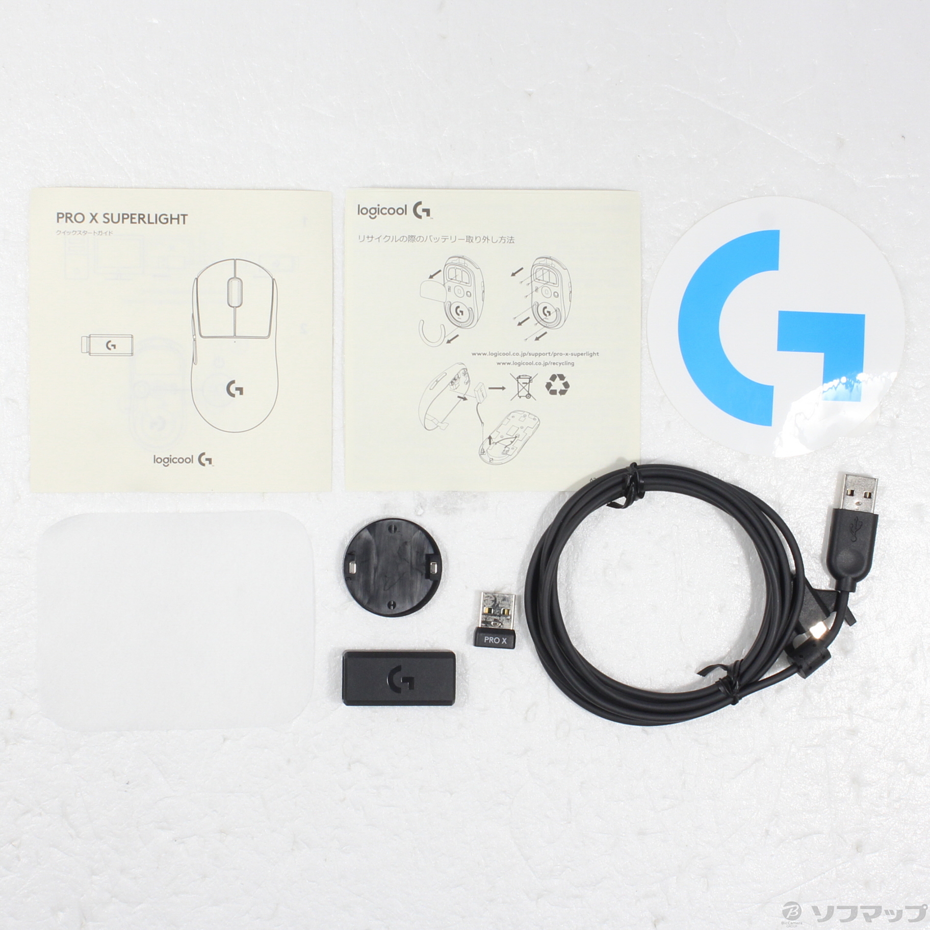 〔付属品〕クイックスタートガイド、レシーバー延長アダプター、ワイヤレスレシーバー、PTFEフィート付きレシーバーカバー、クロス、充電/データケーブル