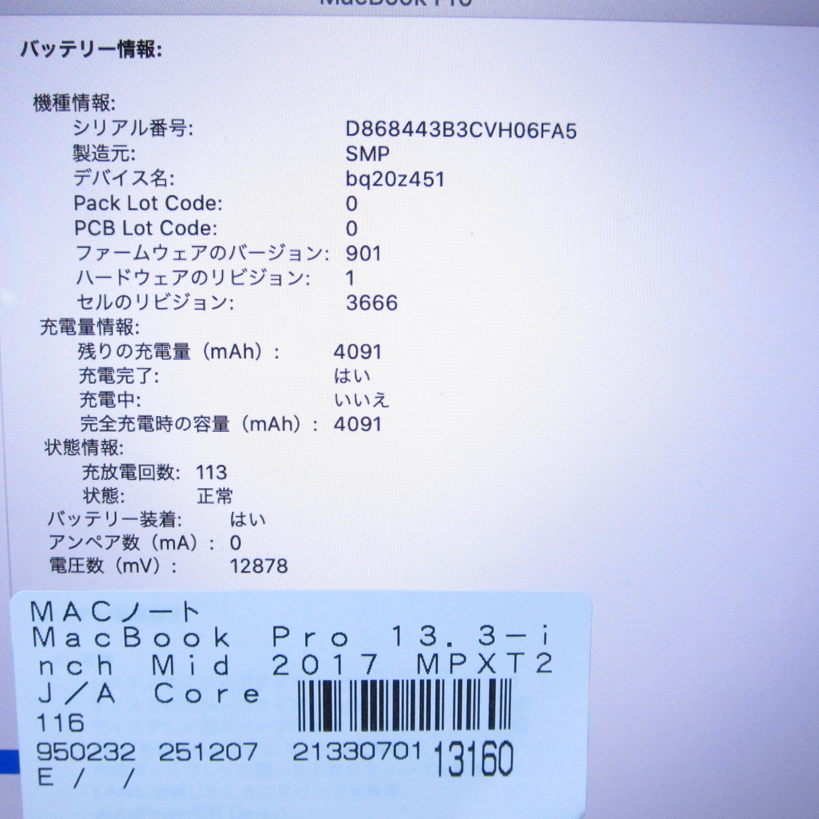 〔中古品〕 MacBook Pro 13.3-inch Mid-2017 MPXT2J/A Core_i5 2.3GHz 8GB SSD256GB スペースグレイ 〔10.15 Catalina〕 [グラフィック:Intel Iris Plus Graphics 640(CPU内蔵)/JISキーボード]