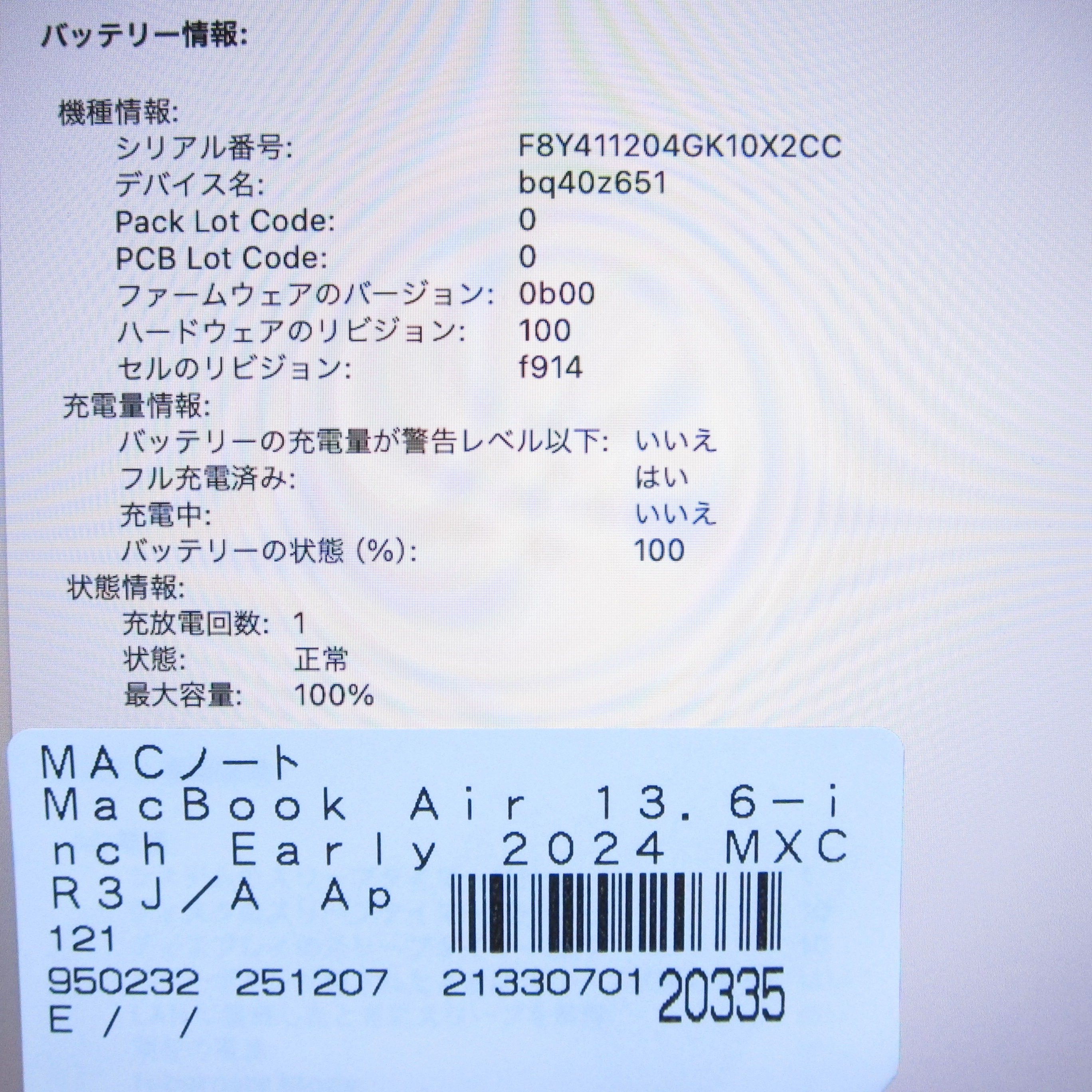 〔中古品〕 MacBook Air 13.6-inch Early-2024 MXCR3J/A Apple M3 8コアCPU_10コアGPU 16GB SSD512GB スペースグレイ 〔14.7 Sonoma〕 [グラフィック:オンボード/JISキーボード]
