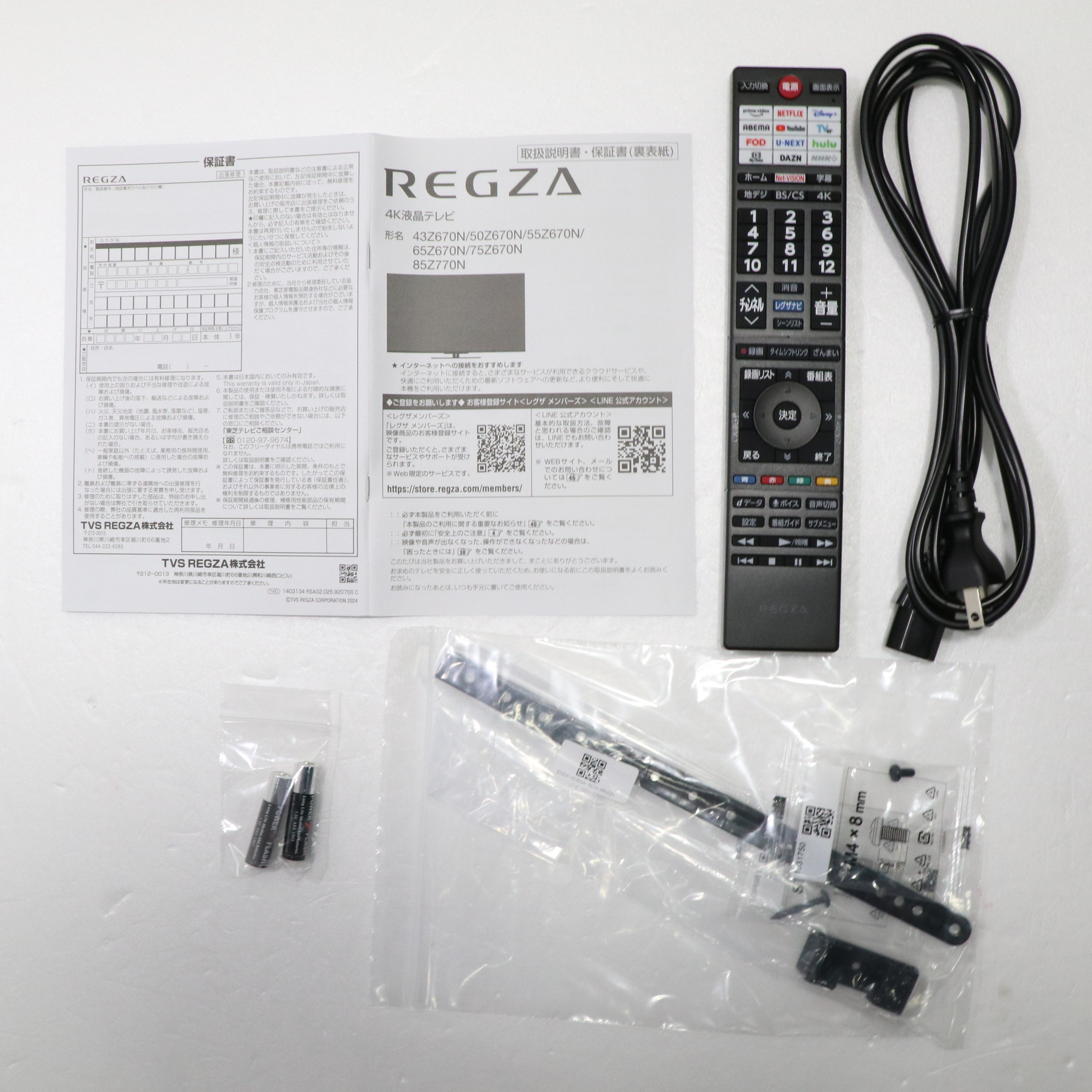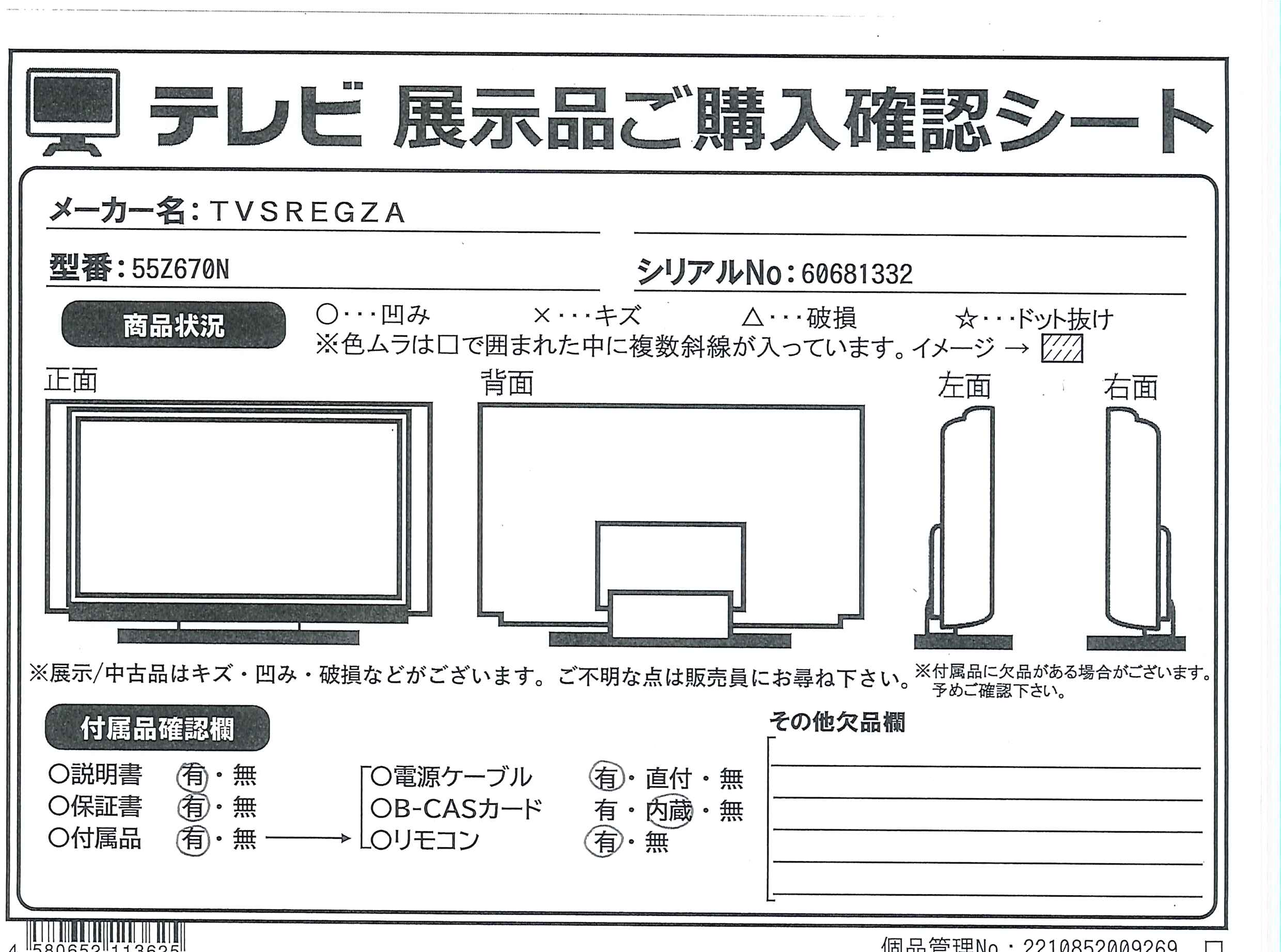中古商品ランクについて 付属品・商品状態について 〔付属品〕取扱説明書、リモコン、リモコン用単4形乾電池×2、電源コード、スタンドベース、スタンド支柱、スタンド組立・取付ネジ×8本、転倒防止バンド一式、コードクランプ、スタンドカバー