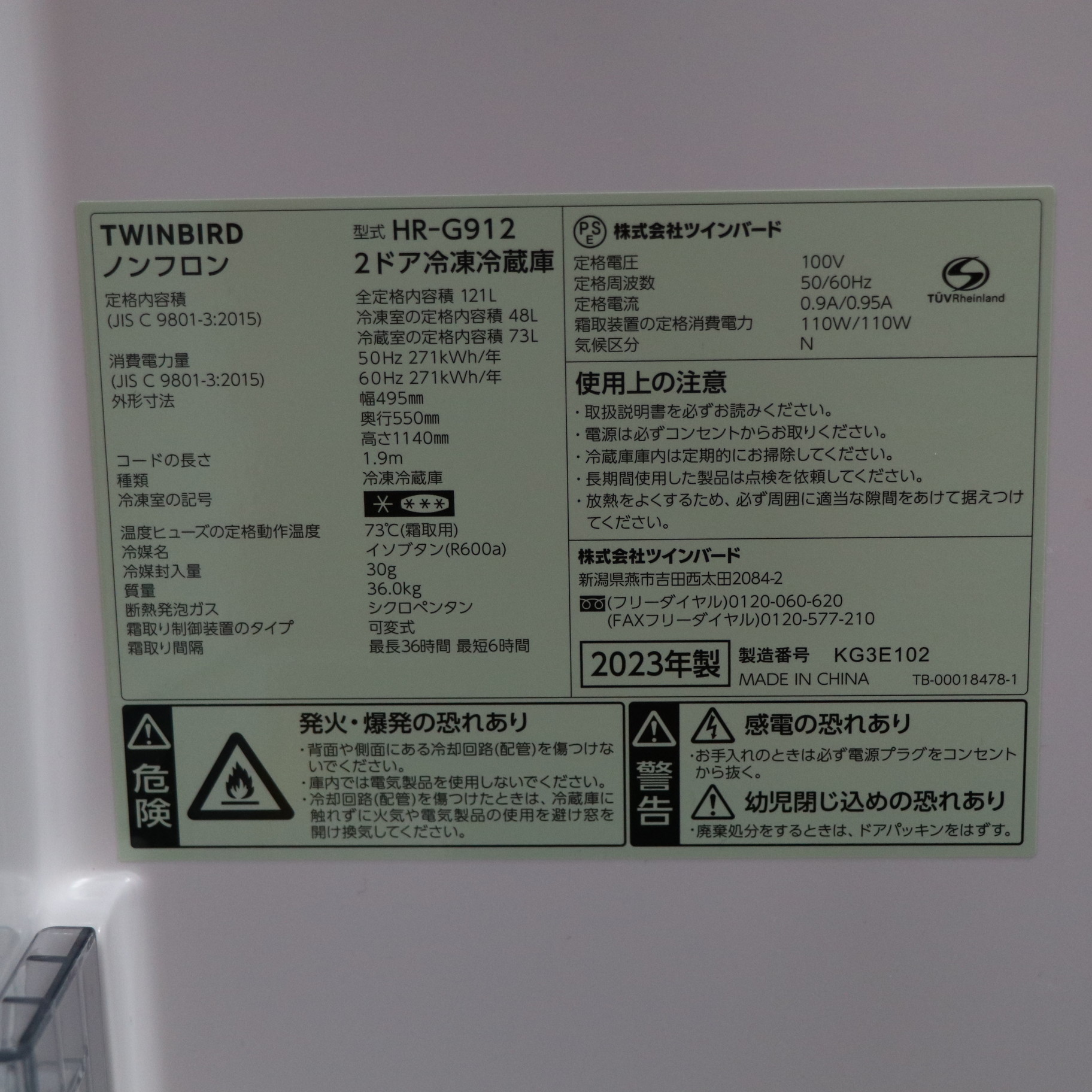 〔展示品〕 冷凍冷蔵庫 HRシリーズ ホワイト HR-G912W [幅49.5cm /121L /2ドア /右開きタイプ /2023年]