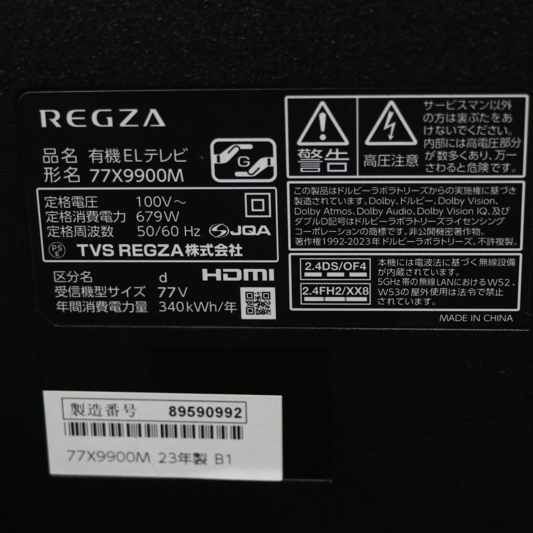 〔展示品〕 有機ELテレビ REGZA(レグザ) 77X9900M [77V型 /Bluetooth対応 /4K対応 /BS・CS 4Kチューナー内蔵 /YouTube対応]