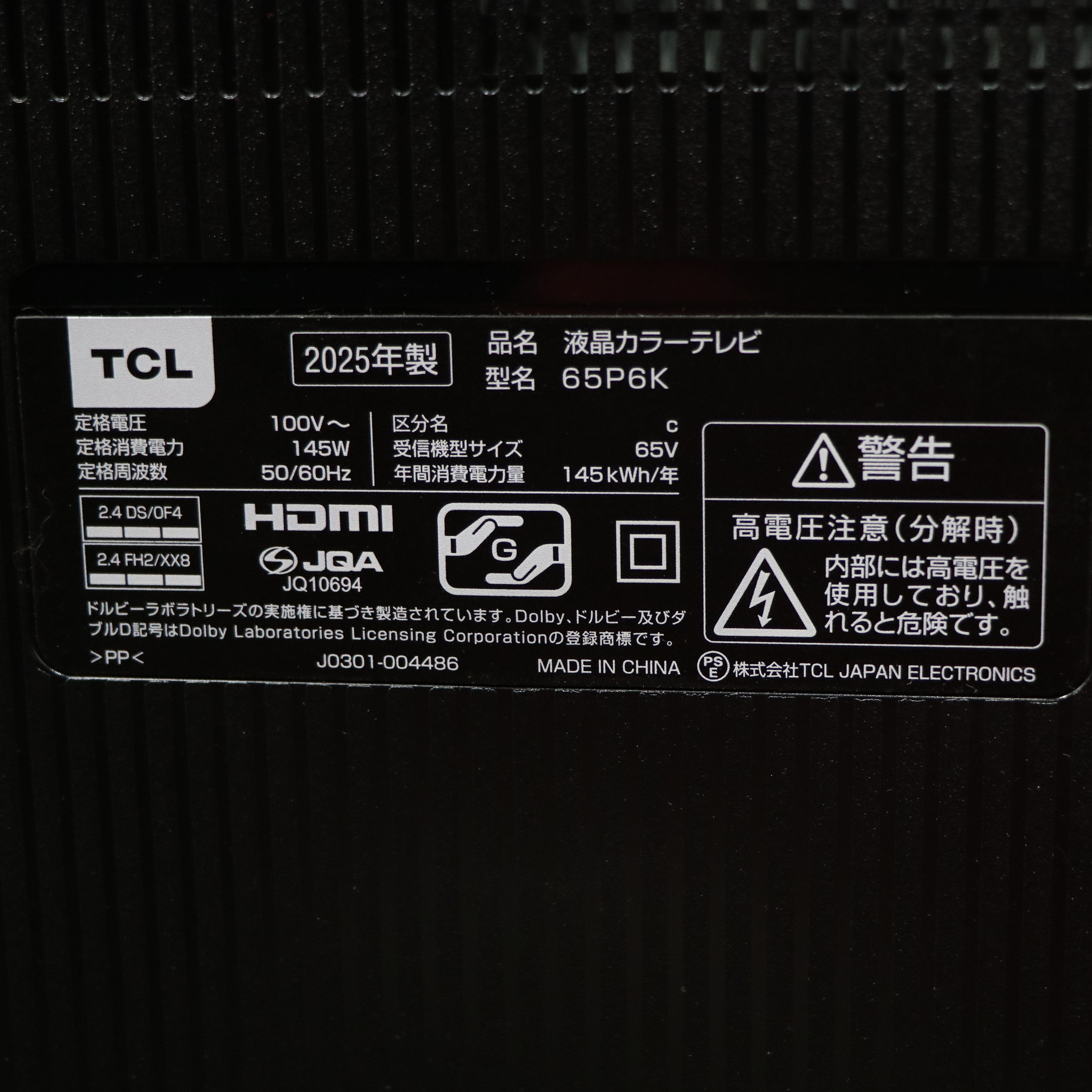 〔展示品〕 4K液晶テレビ P6Kシリーズ 65P6K [65V型 /Bluetooth対応 /4K対応 /BS・CS 4Kチューナー内蔵 /YouTube対応]