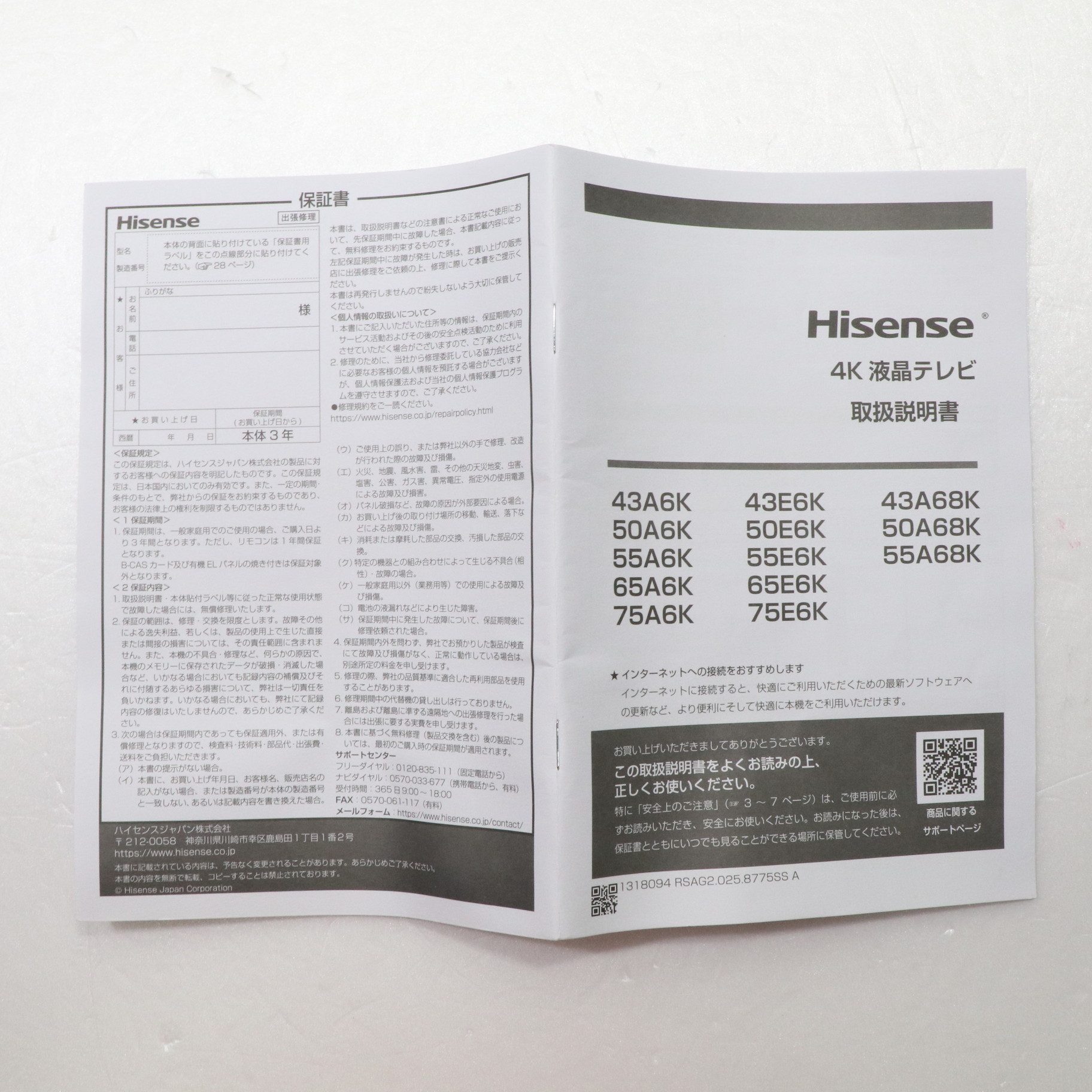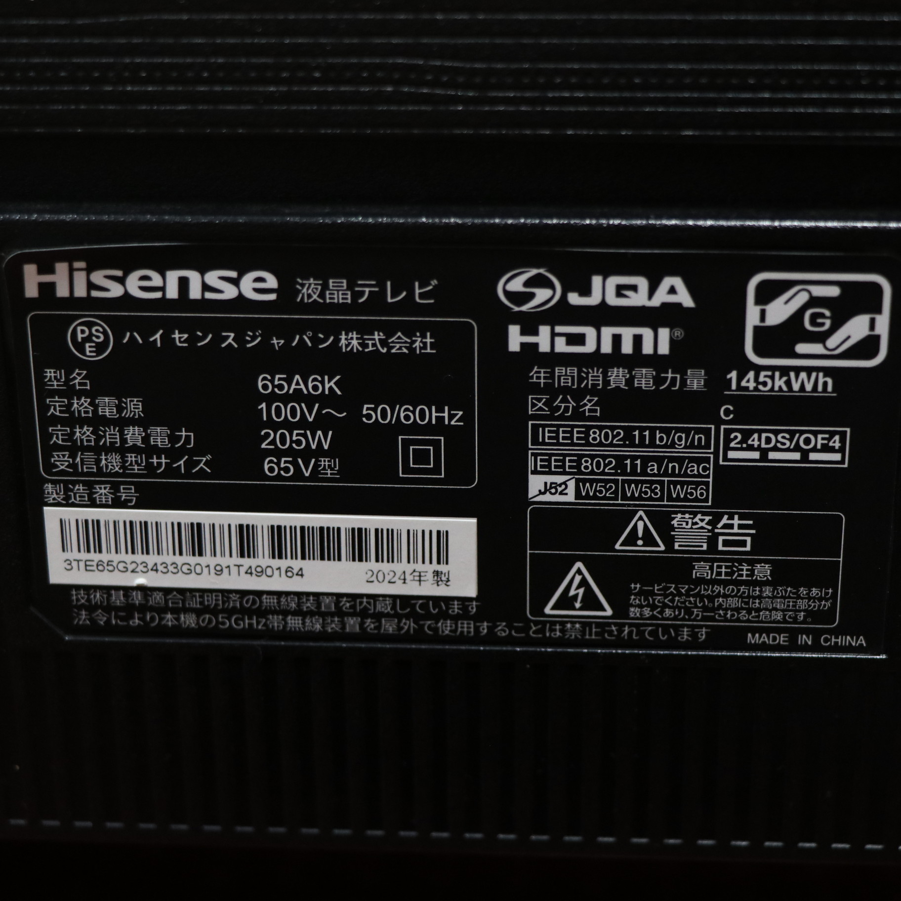 ![Hisense(ハイセンス) 液晶テレビ 65A6K [65V型 /Bluetooth対応 /4K対応 /BS・CS 4Kチューナー内蔵 /YouTube対応]](https://image.sofmap.com/images/product/large/4580341988121.jpg)