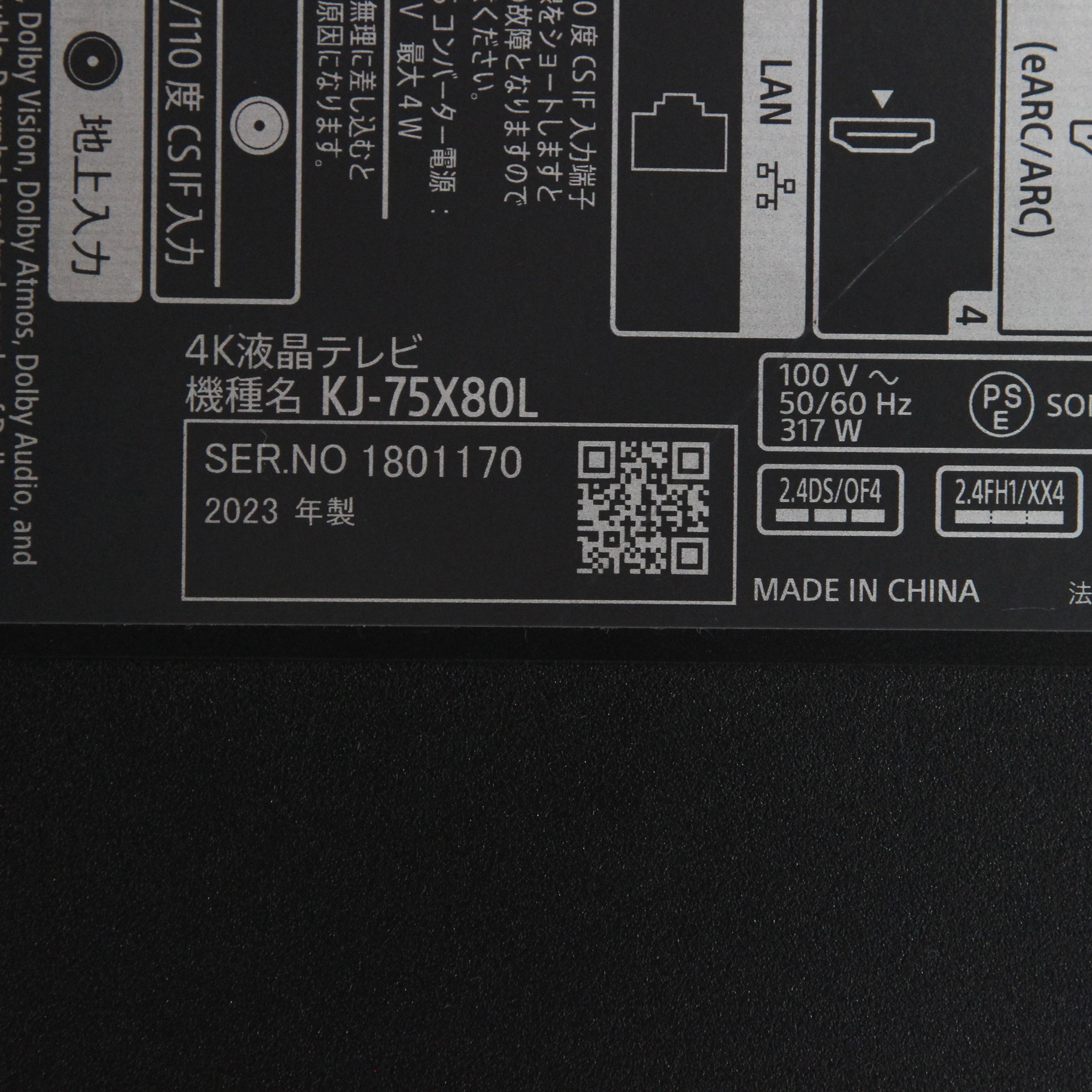 〔展示品〕 液晶テレビ BRAVIA(ブラビア) KJ-75X80L [75V型 /Bluetooth対応 /4K対応 /BS・CS 4Kチューナー内蔵 /YouTube対応]