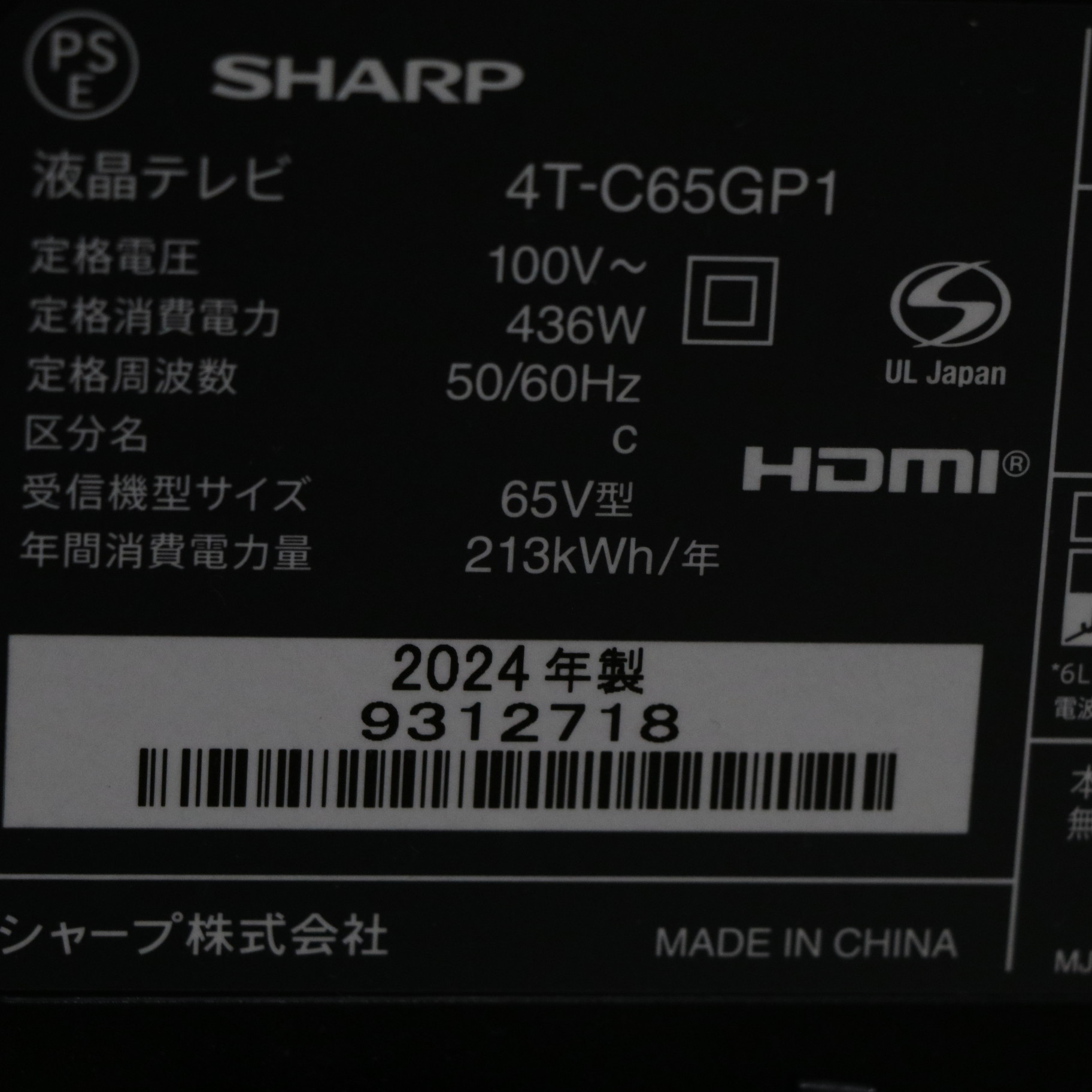 〔展示品〕 液晶テレビ AQUOS ブラック 4T-C65GP1 [65V型 /4K対応 /BS・CS 4Kチューナー内蔵 /YouTube対応]