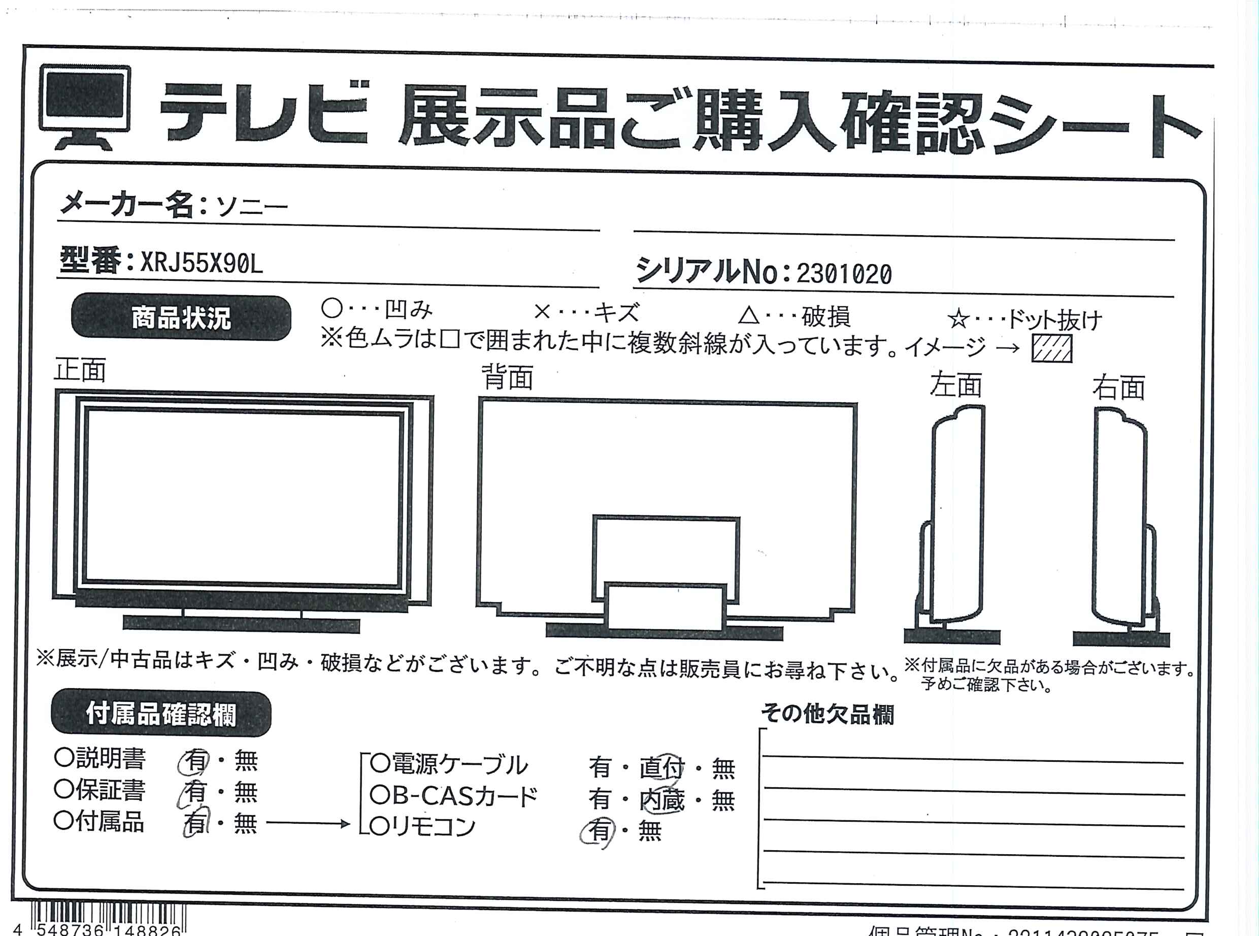 ▼同型番の新品商品はこちら![]() SONY(ソニー) 液晶テレビ BRAVIA(ブラビア) XRJ-55X90L [55V型 /Bluetooth対応 /4K対応 /BS・CS 4Kチューナー内蔵 /YouTube対応] ¥169,800(税込) 0ポイントサービス 在庫限り |