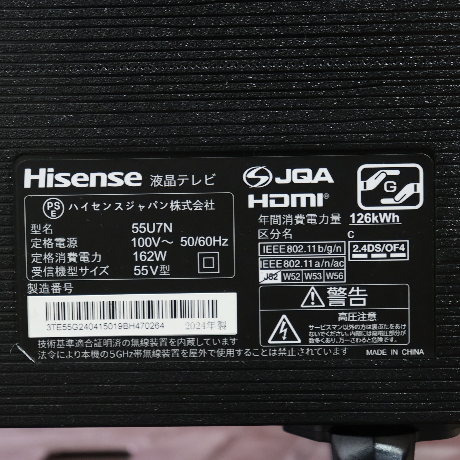 〔展示品〕 液晶テレビ 55U7N [55V型 /Bluetooth対応 /4K対応 /BS・CS 4Kチューナー内蔵 /YouTube対応]