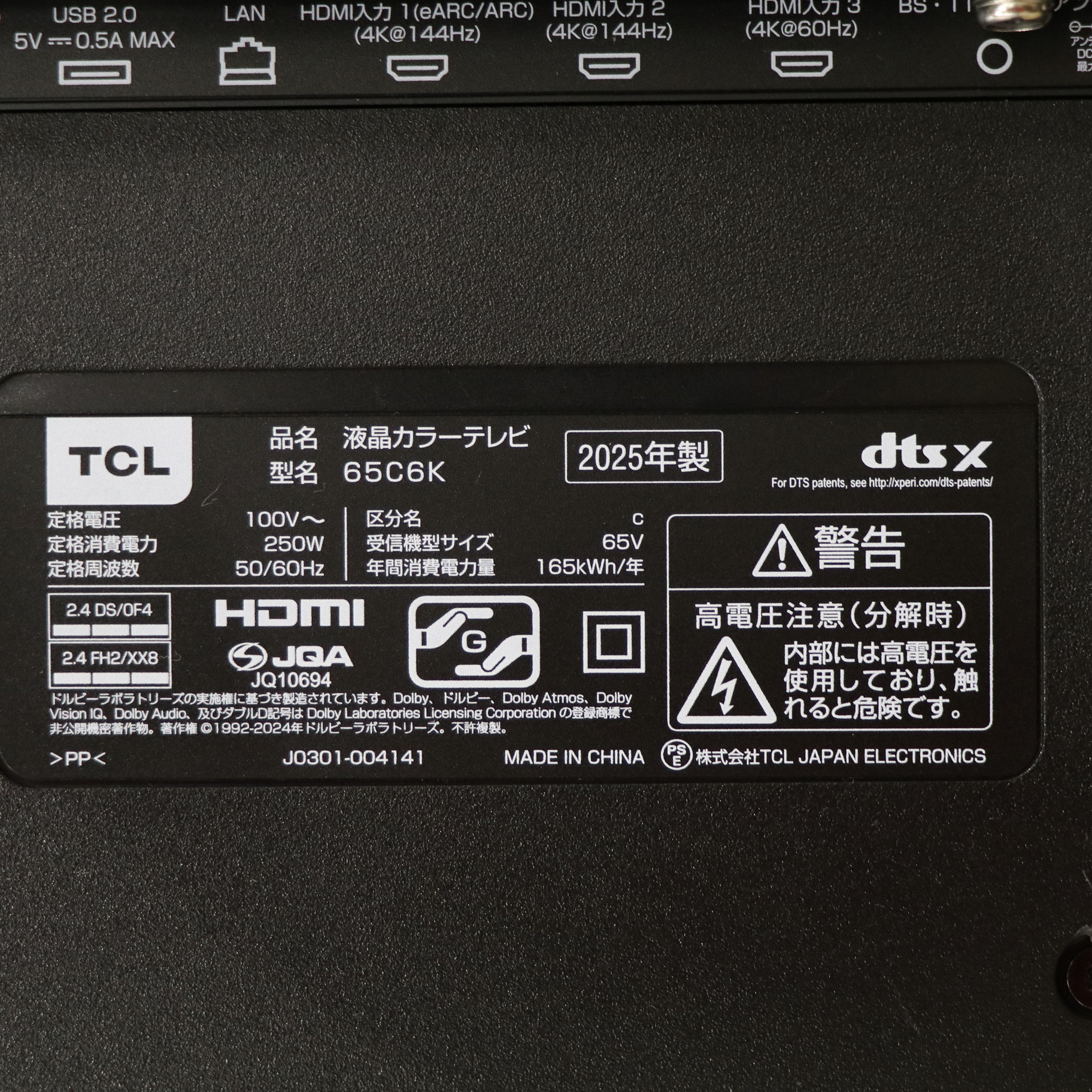 〔展示品〕 液晶テレビ C6Kシリーズ 65C6K [65V型 /Bluetooth対応 /4K対応 /BS・CS 4Kチューナー内蔵 /YouTube対応]