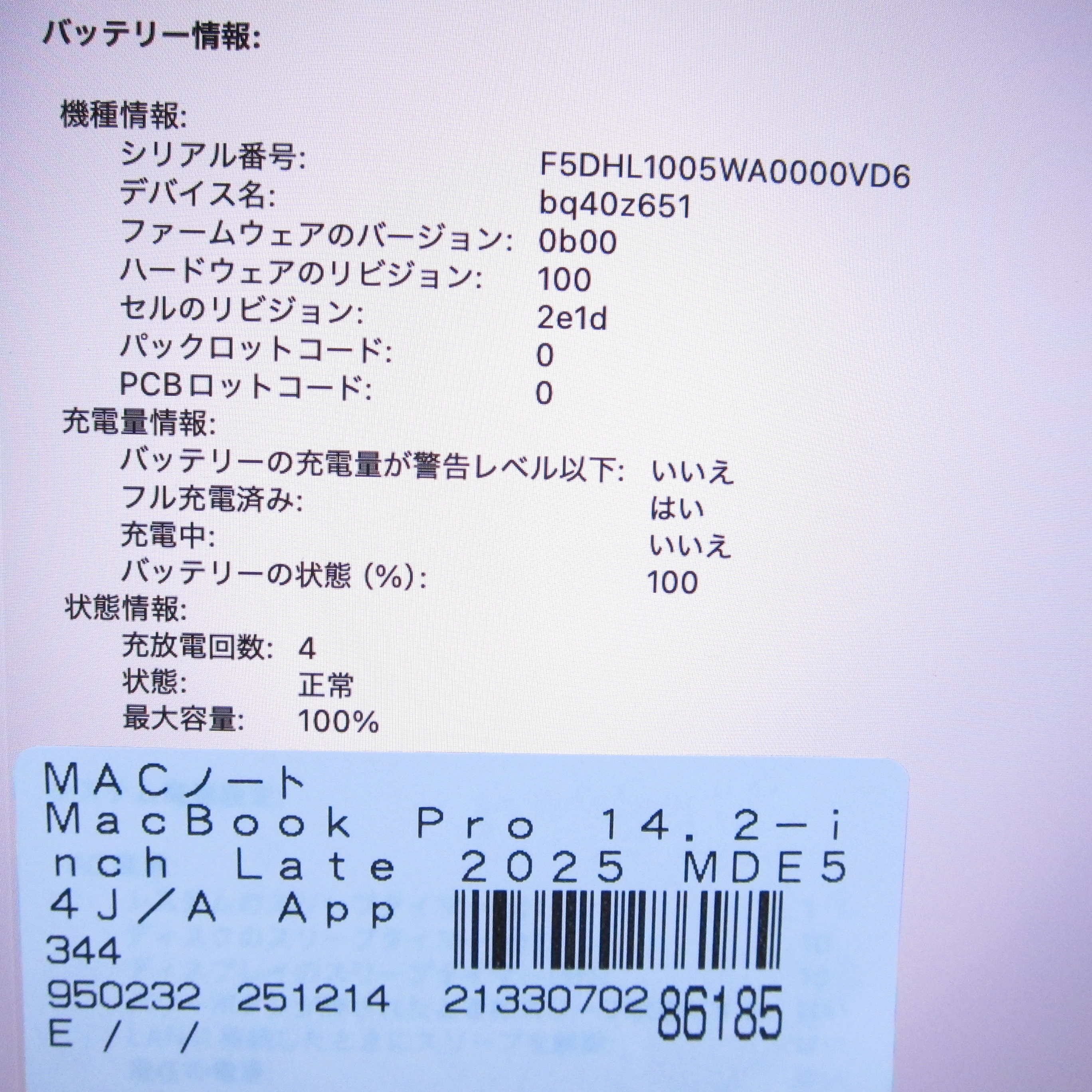 〔中古品〕 MacBook Pro 14.2-inch Late-2025 MDE54J/A Apple M5 10コアCPU_10コアGPU 16GB SSD1TB シルバー 〔26.1 Tahoe〕 [グラフィック:オンボード/JISキーボード]