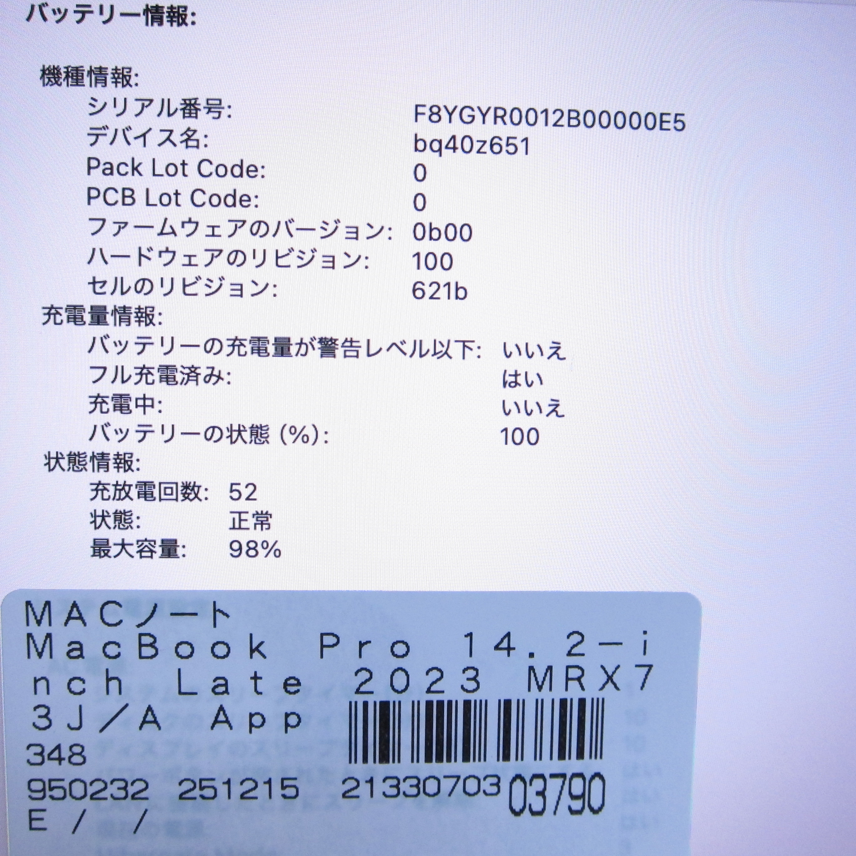 このMacBook Proは、MagSafe充電ポート、3つのThunderbolt 4ポート、SDXCカードスロット、HDMIポート、ヘッドフォンジャックを搭載しています。Wi-Fi 6E※4とBluetooth 5.3による高速ワイヤレス接続に対応。M3 Proモデルは最大2台の外部ディスプレイを接続することもできます。